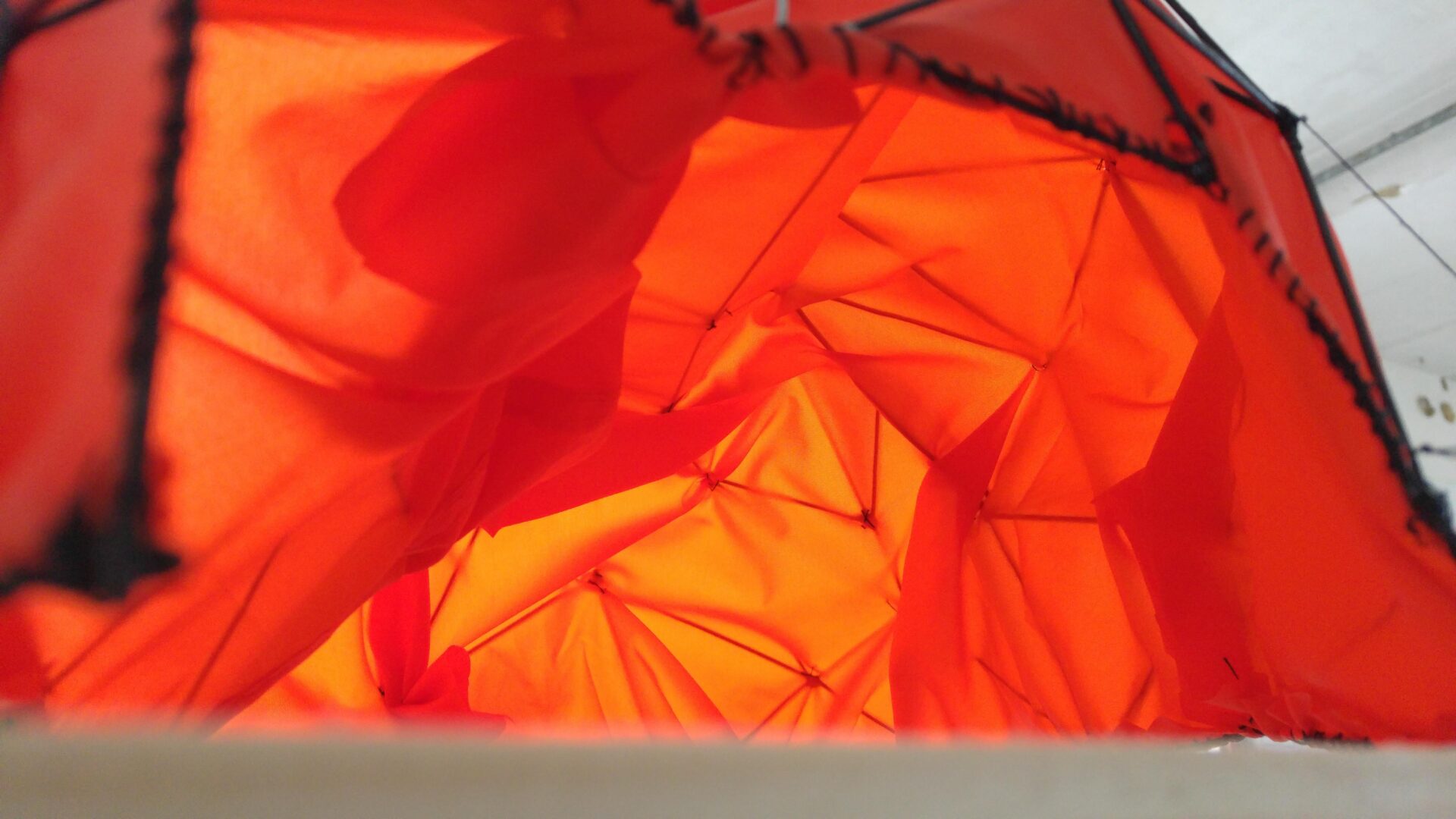 _Mon intention s’est focalisé sur le fait de vouloir transformer une caverne en tente. Ce qui m’intéresse ici c’est l’idée qu’un abris naturel, archétypal, tellurique et donc par essence sédentaire puisse devenir nomade, léger, modulable, démontable. C’est dans cette translation que j’ambitionne de travailler. Dans le projet, si il advenait à être vraiment réaliser, la forme de la tente en question serait générée par la topographie, l’échelle et les reliefs naturels de la caverne. Toutes ces donnés seraient «enregistrées» dans le tissu et la structure même de la tente et sortirait ainsi de leur contexte d’origine pour venir s’offrir au mouvement et «s’arracher de la roche». L’idée qu’une tente puisse avoir des formes biscornues, incohérentes, inutilement complexes m’intéresse beaucoup. Non pas pour le plaisir de perturber la fonction d’un objet usuel, mais pour l’envie de réinjecter de l’aléatoire et du naturel dans un objet artificiel. Il s’agirait ici de franchir les limites du simple usage et d’y ajouter des notions de hasard et de «non-contrôle». Les envisager comme étant des éléments primordiaux, incontournables et nécessaires à la construction d’un habitat et laisser apparaître ce qui peut en résulter dans le formel et dans le vécu.