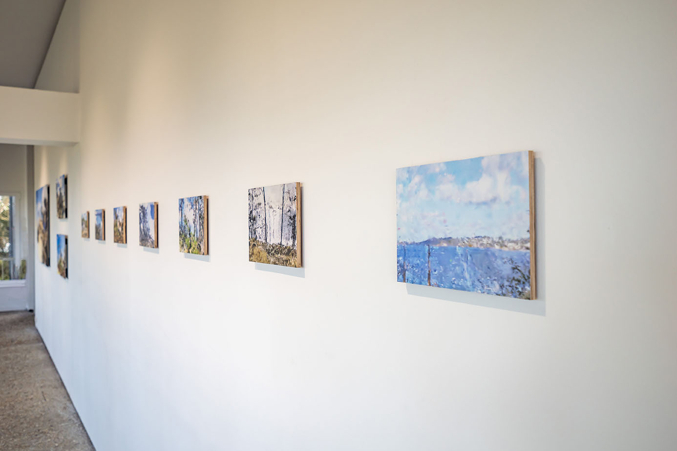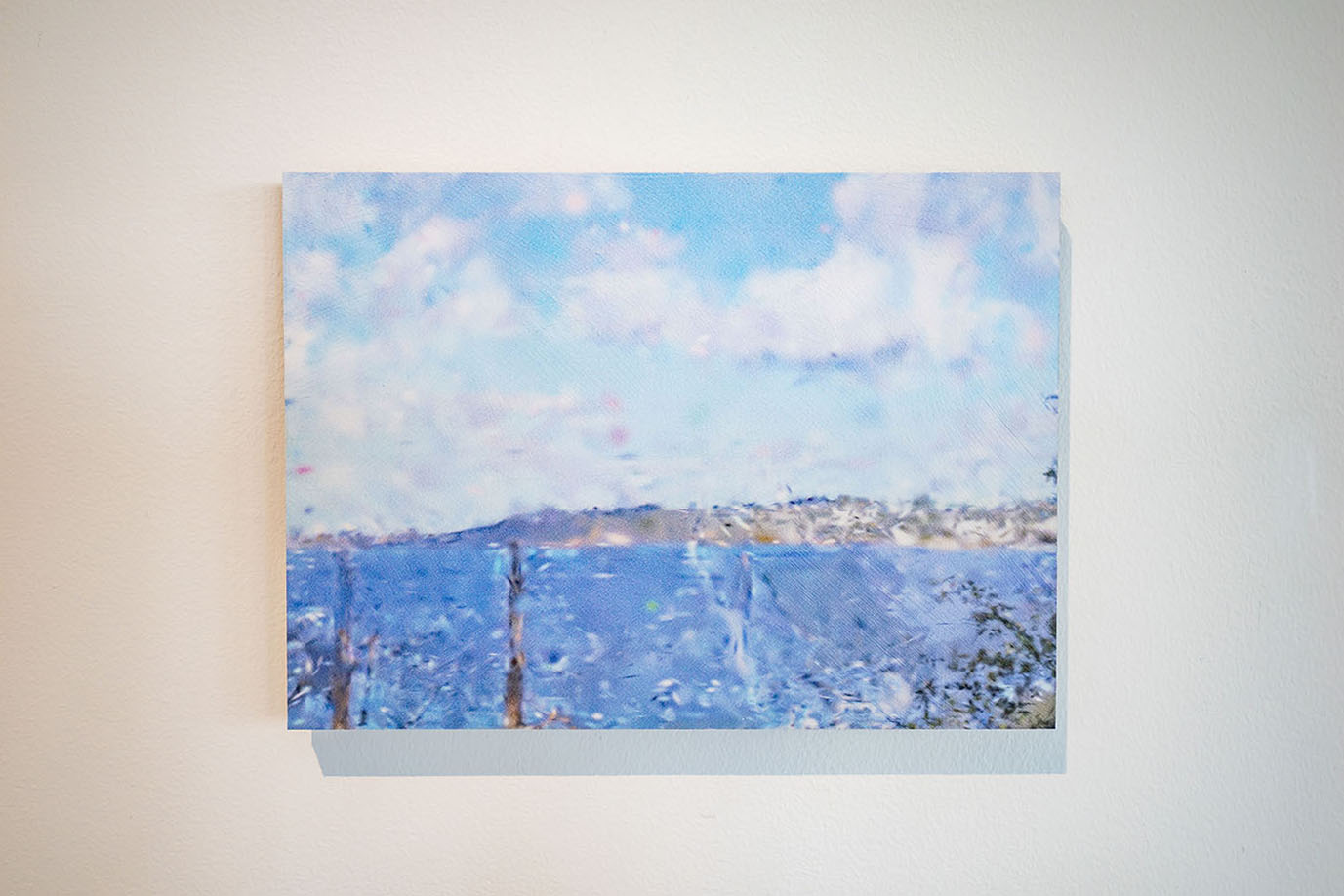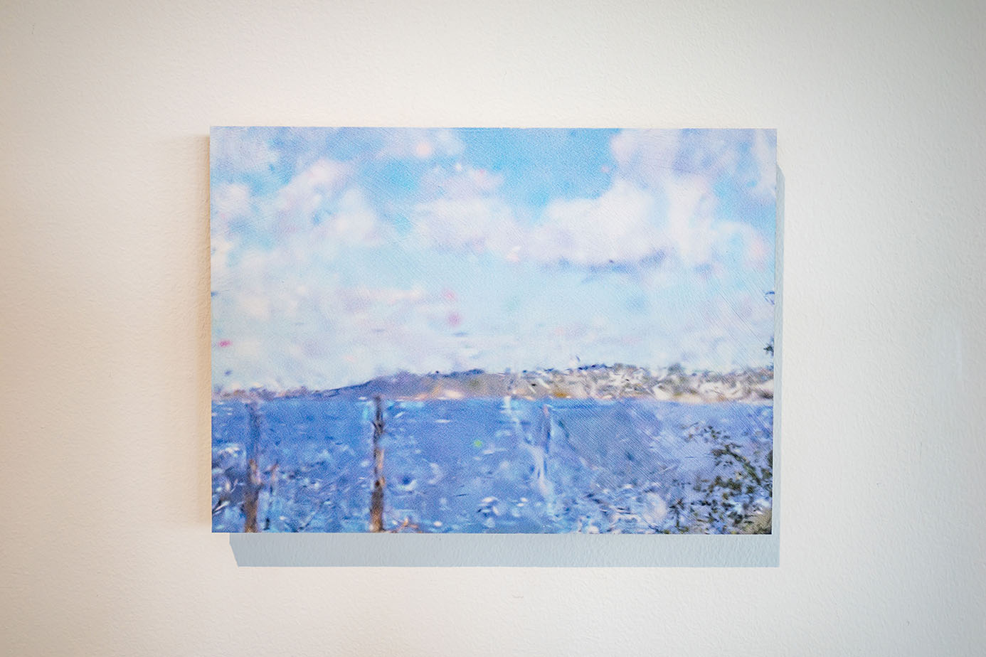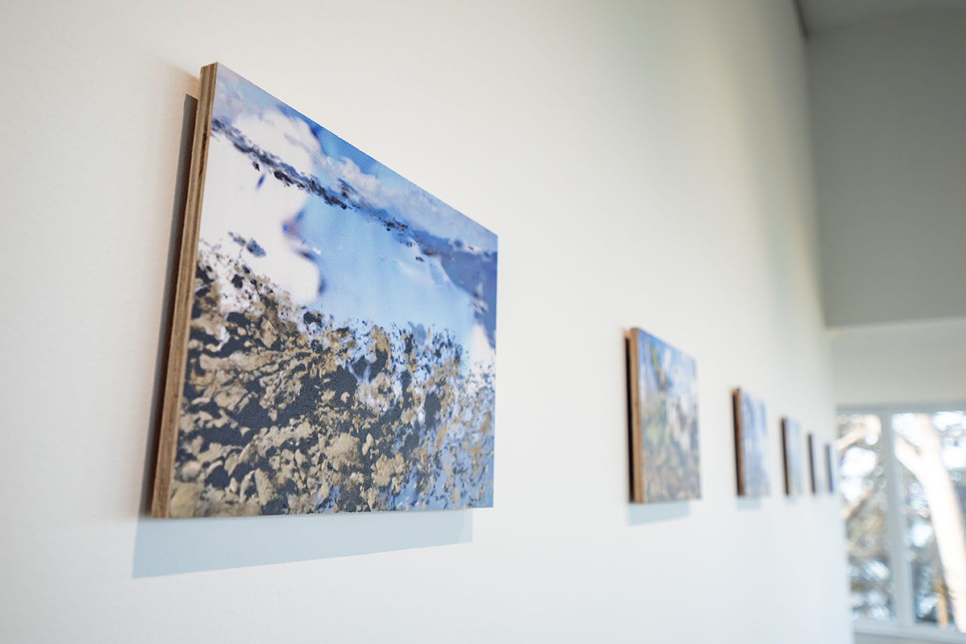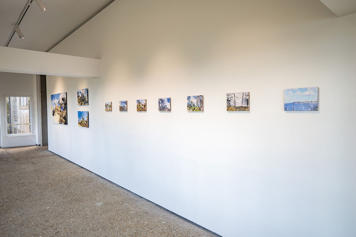 Issues de photogrammétries réalisées à la galerie du Dourven, ces impressions sont obtenues par des recadrages sur les arrière plans et le paysage environnant, évacuant ainsi le sujet original. Le photo-réalisme vacille, le numérique glisse alors vers une matière qui évoque la technique picturale : aplats incertains, contours vibrants, textures qui hésitent entre le pixel et la touche. Les supports, simples plaques de bois peintes, sèment le doute entre images numériques et techniques traditionnelles. Cette série propose une représentation de paysages qui s’auto-recomposent à travers leurs propres accidents. Un fil fragile les traverse : une oscillation entre une nature contrôlée et son propre réensauvagement.