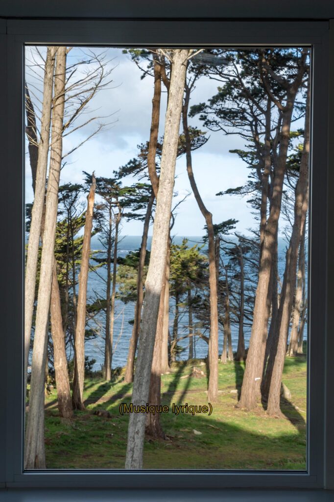 Réflexion lyrique sur la découverte et le ressenti des artistes vis-à-vis du domaine du Dourven, ce dialogue s’inspire de leurs références (Guillevic, Herzog, Cocteau, Daumal,…) Présentés sous forme de sous-titres collés à même les vitres, ces textes transforment chaque fenêtre de la galerie en un écran qui dévoile un paysage cinématographique.