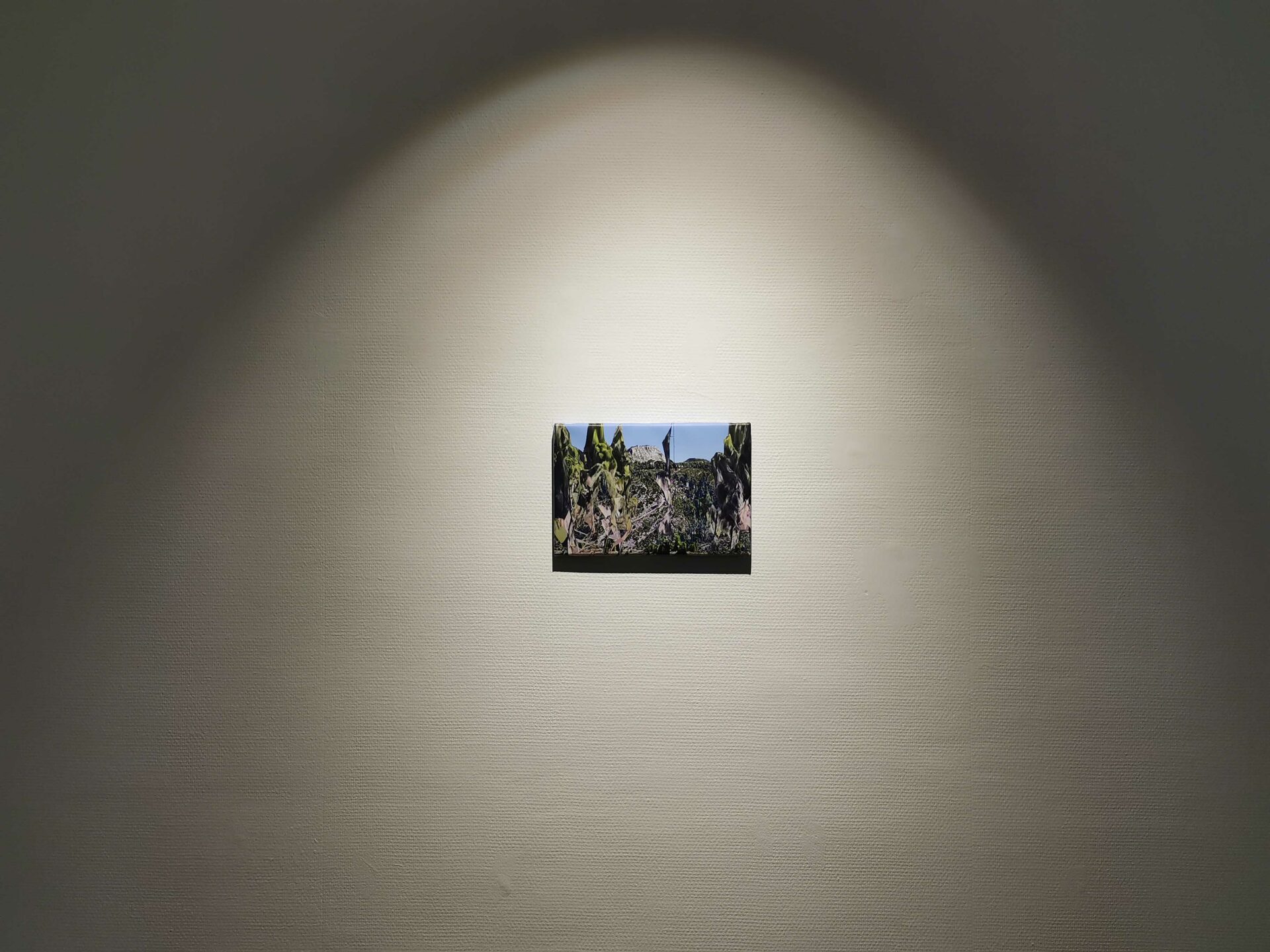 Artiste plasticien, diplômé de l’école européenne supérieure d’art de Bretagne, Guillaume Lepoix développe un travail protéiforme qui questionne les rapports entre le monde numérique et le monde naturel. Le titre de l’exposition fait allusion à une maladie de l’œil provoquant un défaut de vision. Car c’est bien un questionnement autour de la véracité de la perception humaine, qui rassemble les œuvres de cette exposition. Cette dichotomie entre le réel et le virtuel, qui est au cœur de travail de Guillaume Lepoix, s’appuie sur la notion de paysage. Étymologiquement, le paysage est « ce que l’on voit du pays ». Le paysage est donc une apparence et une représentation, et il n’est de paysage que perçu. Pourtant dans le sens commun le paysage est la réalité, c’est l’environnement qui sert d’écrin à la vie. Guillaume Lepoix joue avec les différentes formes de la représentation du paysage et les moyens techniques que l’homme a conçus pour arriver à cette figuration. Photographie, impression, vidéo, dessin tous les moyens sont ici déclinés pour évoquer, plutôt qu’une réalité, un paysage sensible. Il n’y a pas de rivalité entre les médiums, car c’est en les associant que la création prend forme.