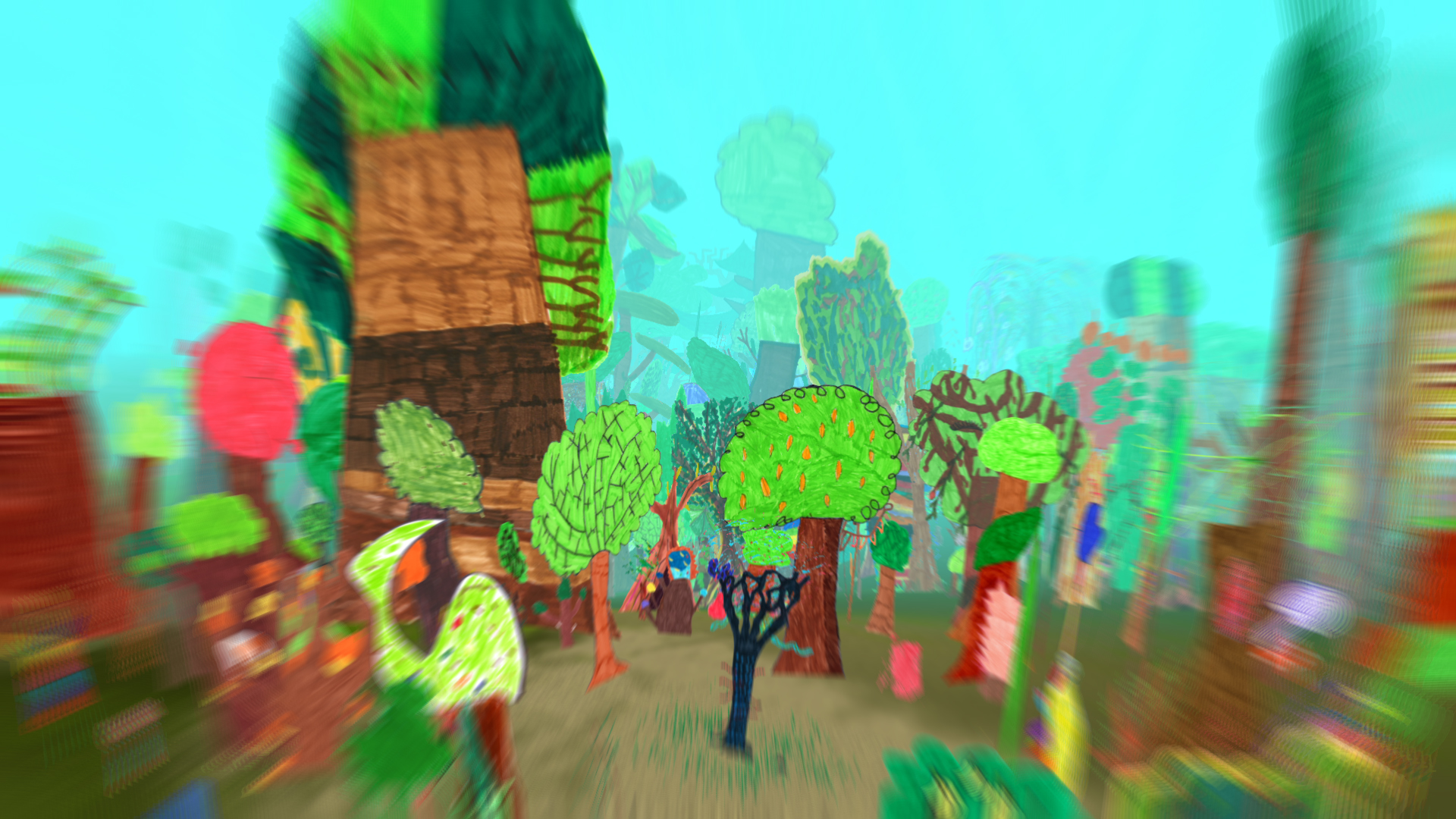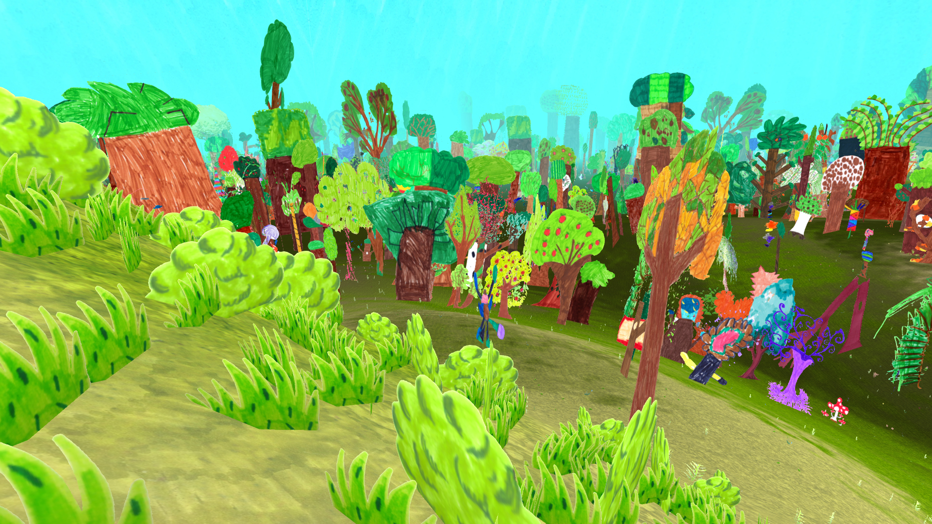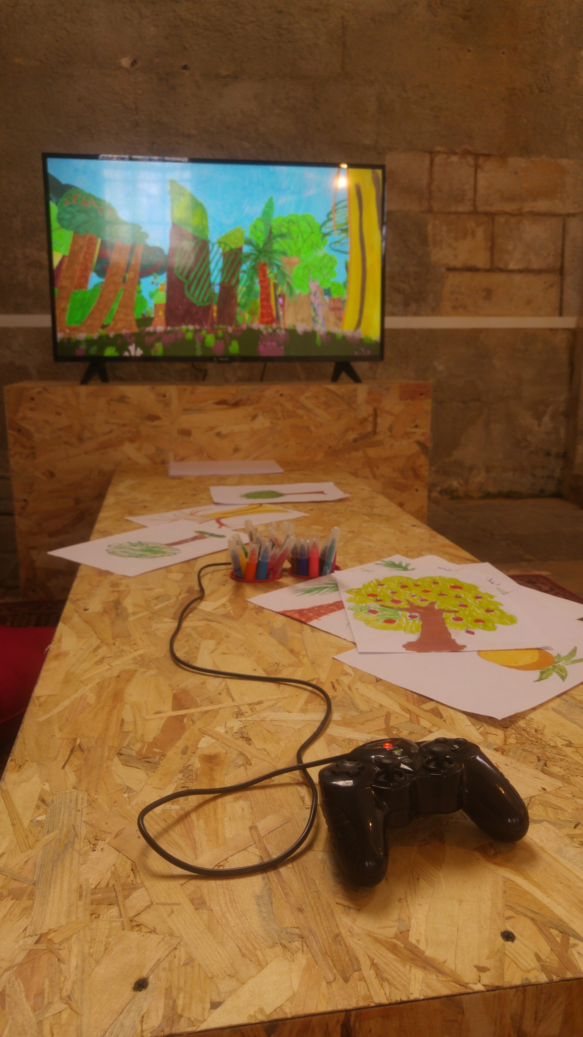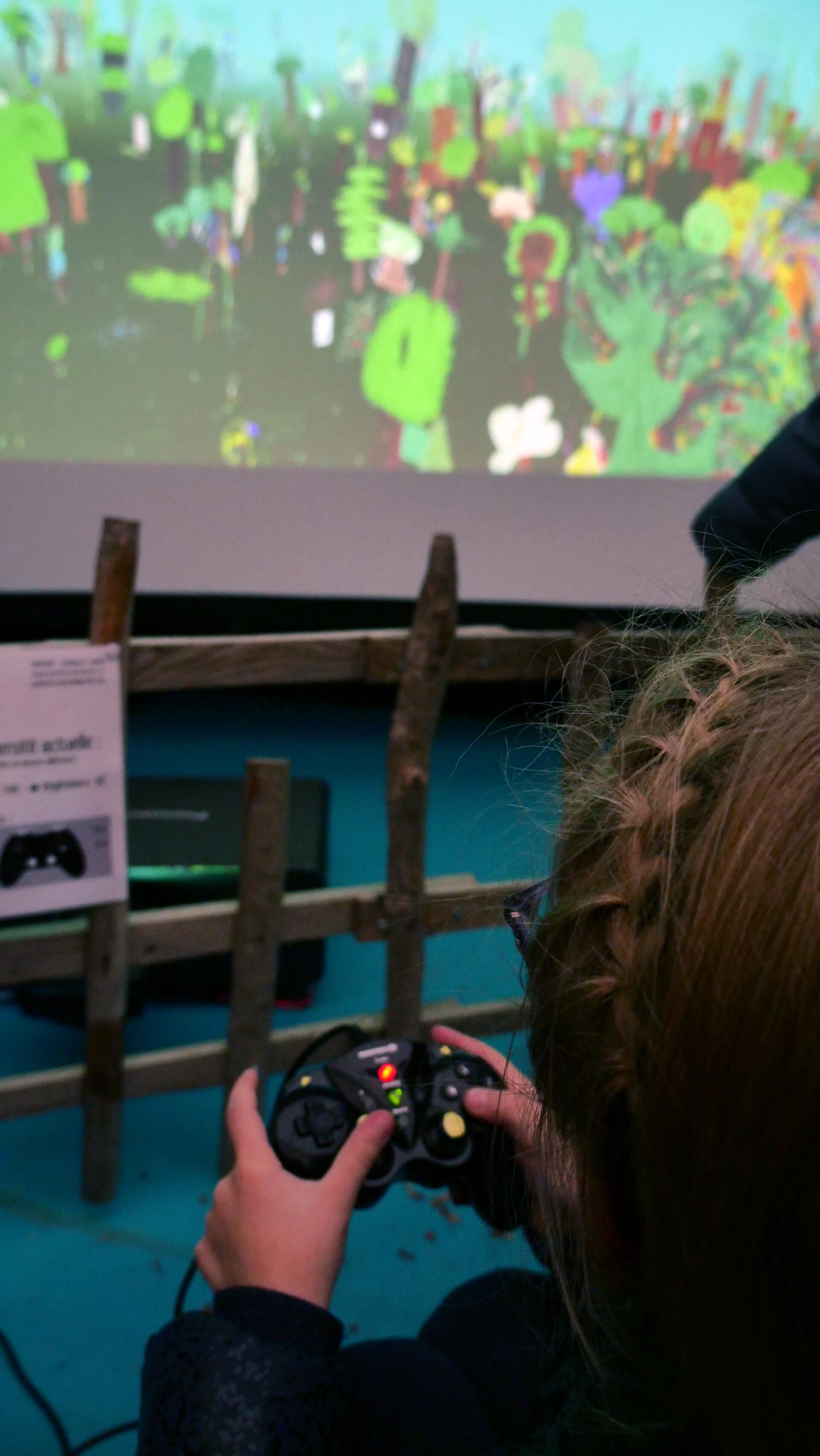 Ce projet a donc l’allure d’un jeu vidéo sans vraiment en être un, du moins pas un jeu classique : Il n’y a ici, aucun score à atteindre, aucun ennemi à abattre, ni énigme à résoudre et aucun but réellement explicité sinon celui de la libre déambulation, de l’exploration et de la contemplation.C’est un projet en perpétuelle évolution : l’objectif de chaque atelier est de récolter un maximum de dessins pour avoir la forêt la plus variée possible. Ce qui signifie que plus il y a de participants, plus la biodiversité est grande !