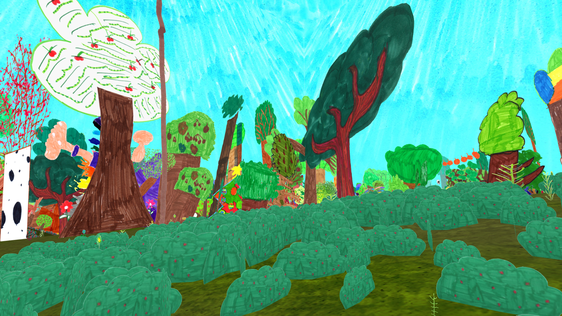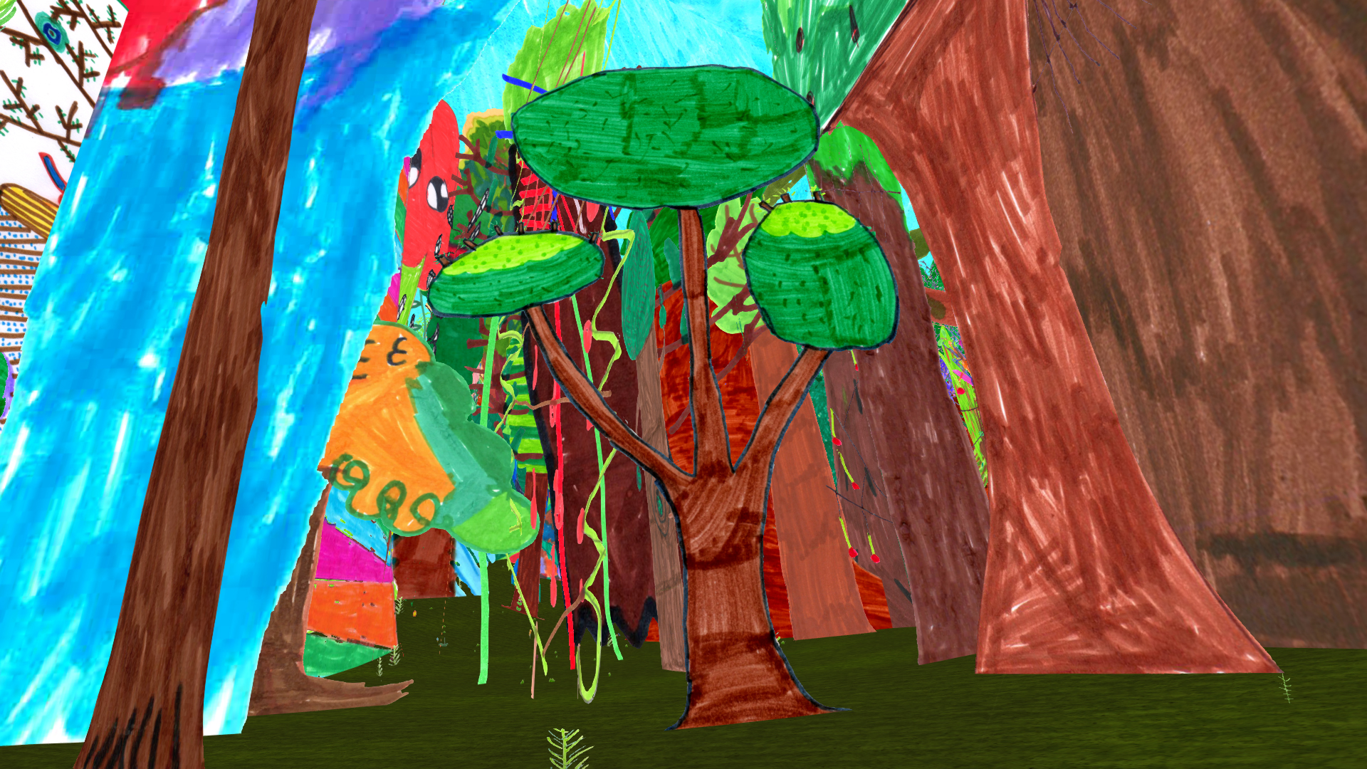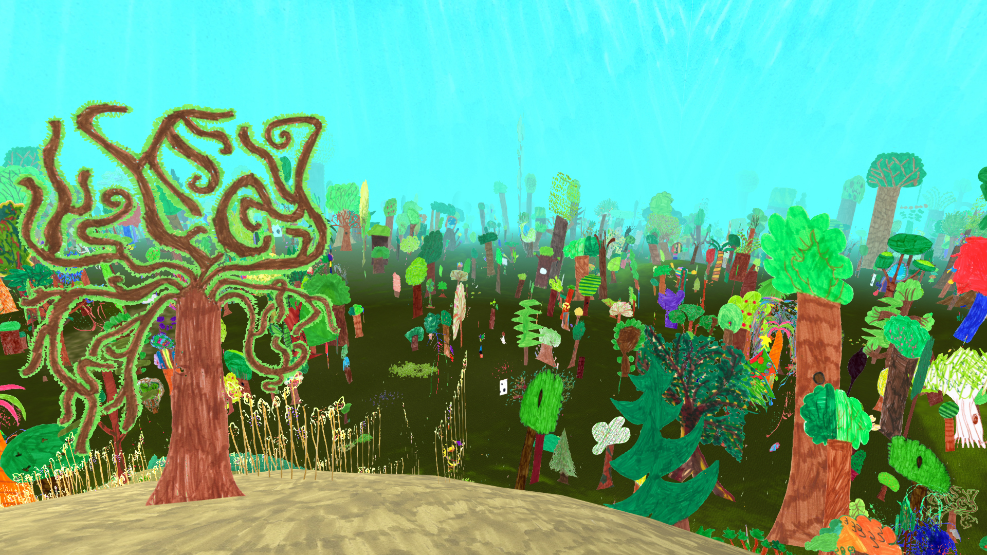Ce projet numérique interactif offre aux publics l’occasion de participer activement à la création de l’œuvre : cette expérience vidéo-ludique propose d’explorer une forêt virtuelle réalisée à partir de dessins d’enfants. Chaque arbre reflète la personnalité de chacun, tout en se fondant dans l’ensemble complexe et protéiforme qu’est la forêt elle-même. Le spectateur/joueur est ainsi invité à explorer cette étrange jungle et à admirer les différents dessins réalisés.