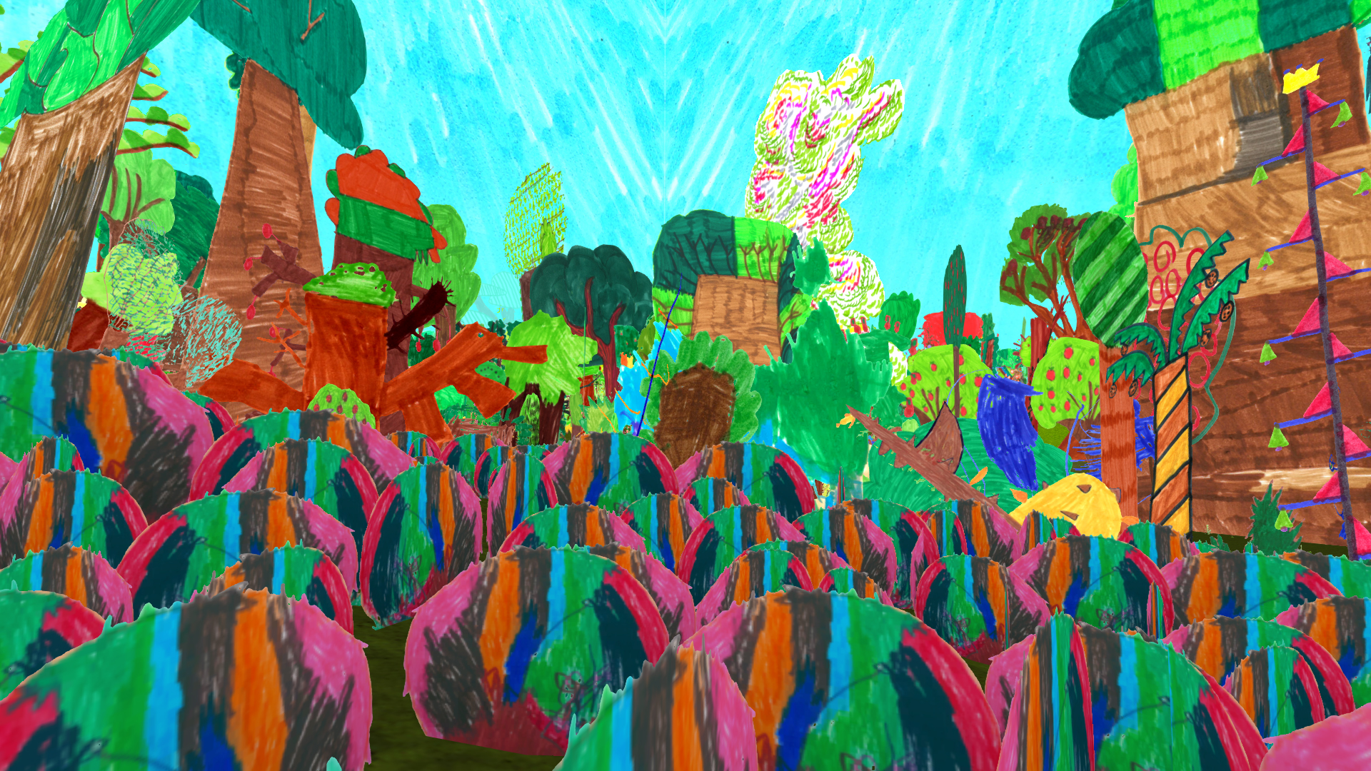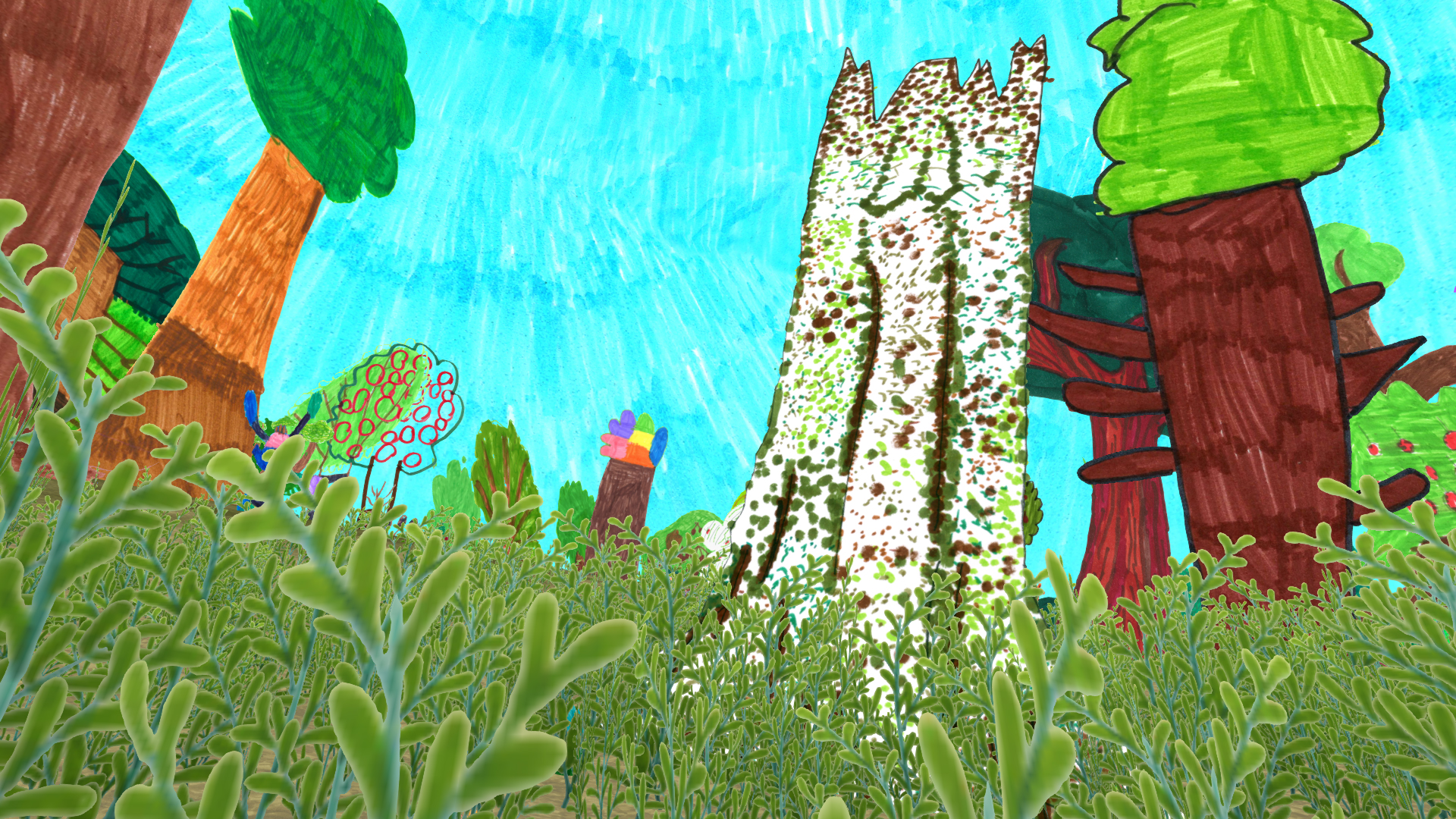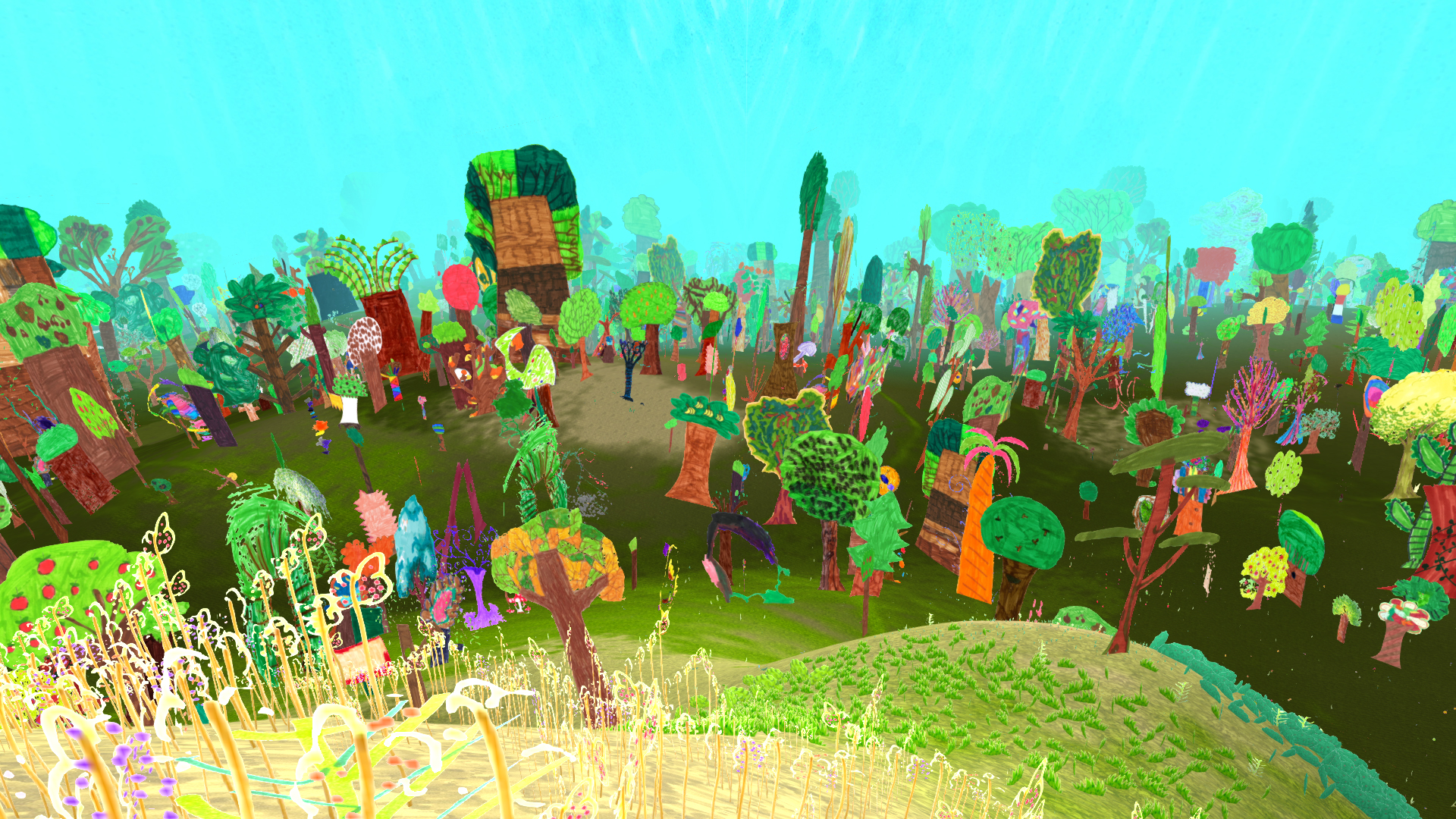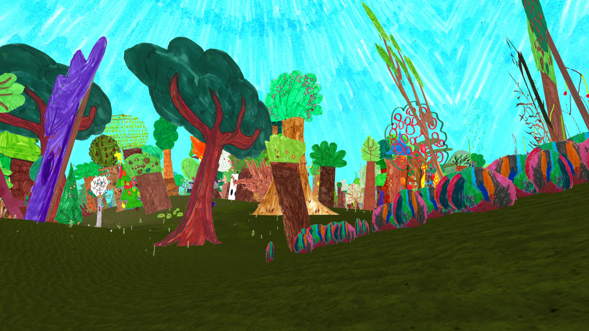 Ce projet numérique interactif offre aux publics l’occasion de participer activement à la création de l’œuvre : cette expérience vidéo-ludique propose d’explorer une forêt virtuelle réalisée à partir de dessins d’enfants. Chaque arbre reflète la personnalité de chacun, tout en se fondant dans l’ensemble complexe et protéiforme qu’est la forêt elle-même. Le spectateur/joueur est ainsi invité à explorer cette étrange jungle et à admirer les différents dessins réalisés.