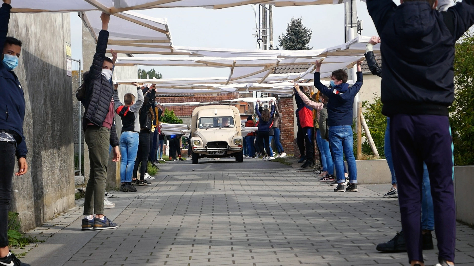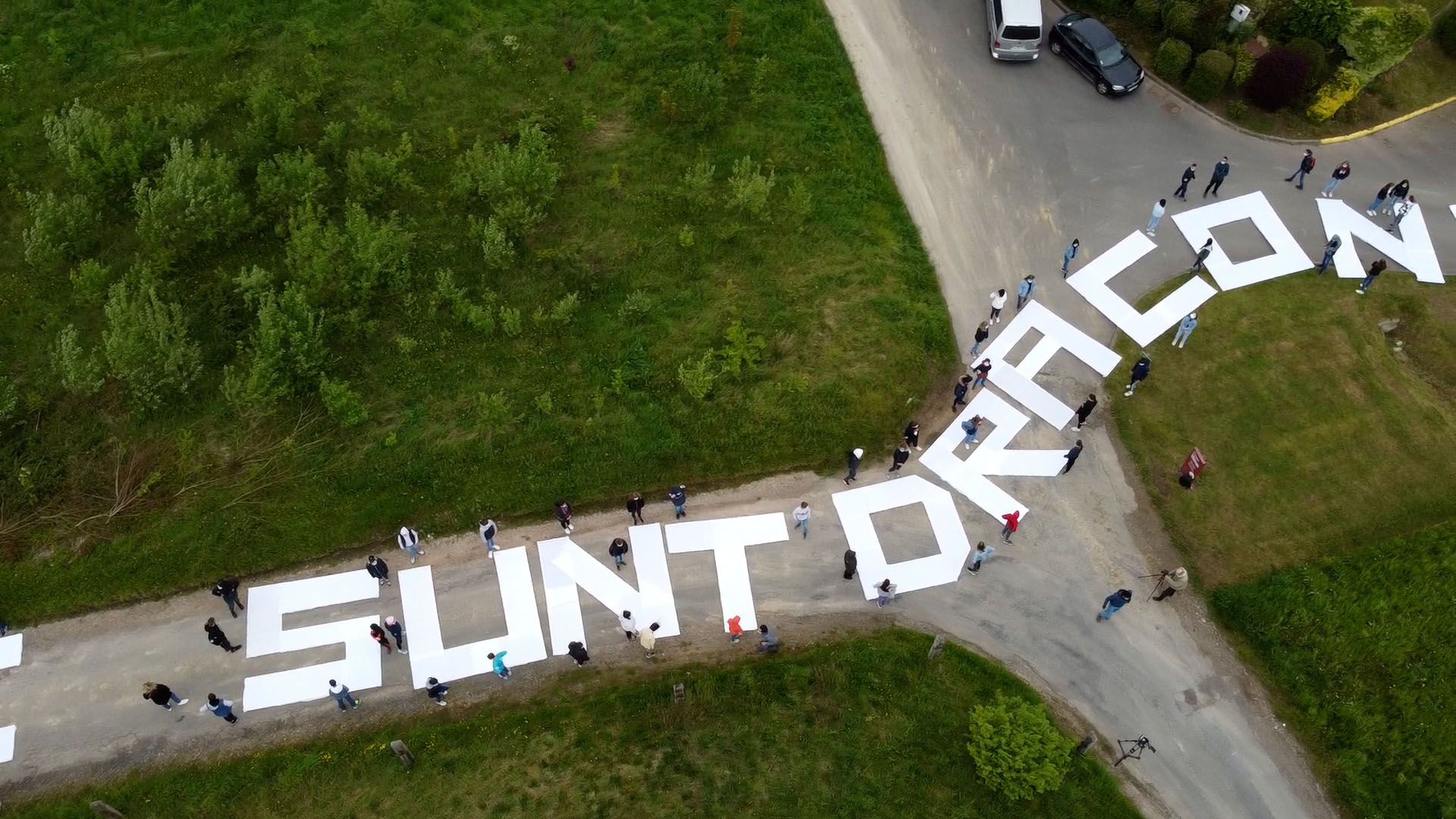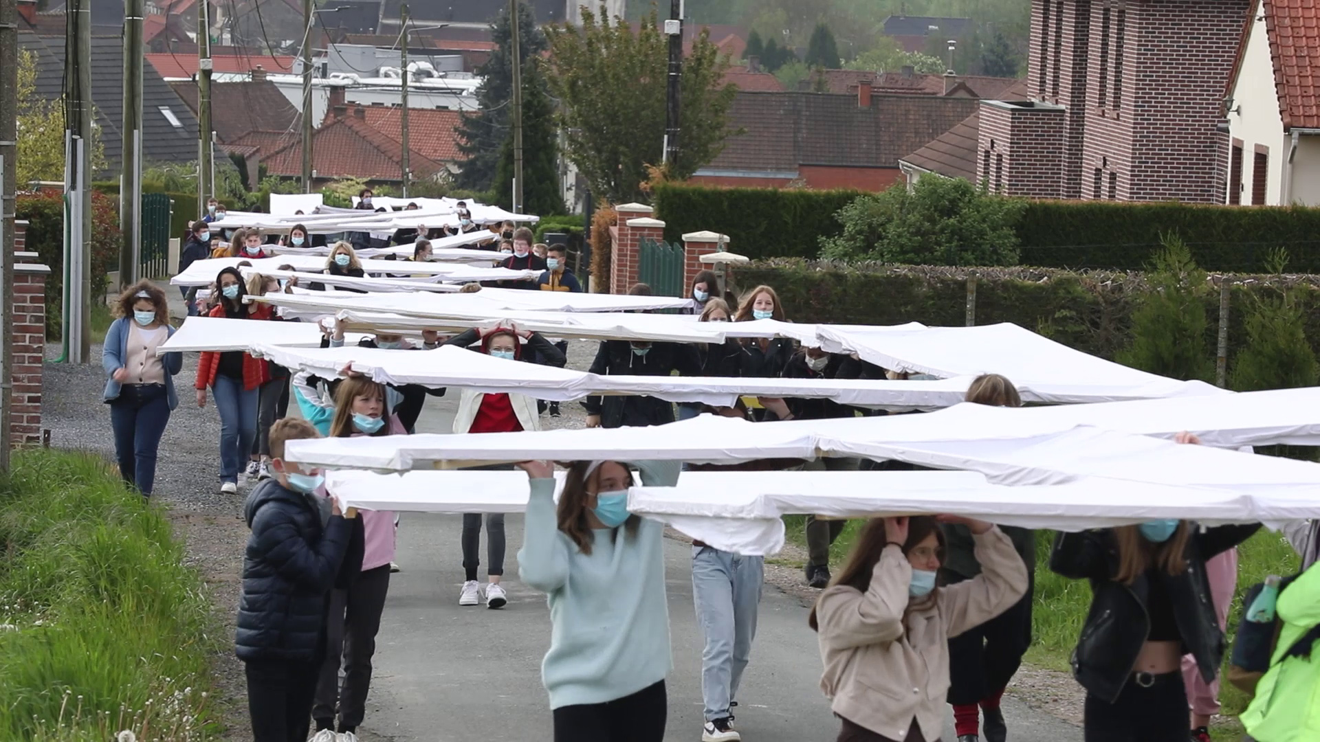 Très vite, l’intention est fixée, le cadre annoncé, soutenu par les enseignantes et la direction de l’établissement. Pour réaliser cette performance, l’implication de tous les élèves, des familles, des acteurs locaux et de la communauté éducative aura été nécessaire. Durant 4 mois, plusieurs moments et rencontres se succèdent : harangue d’ouverture au chantier à venir, travail de recherche et de documentation cartographiques, collecte des matériaux nécessaires, chantier de construction des lettres, déambulation collective et documentation vidéo, et enfin, la réalisation du court-métrage, témoin de l’expérience vécue avec les élèves.