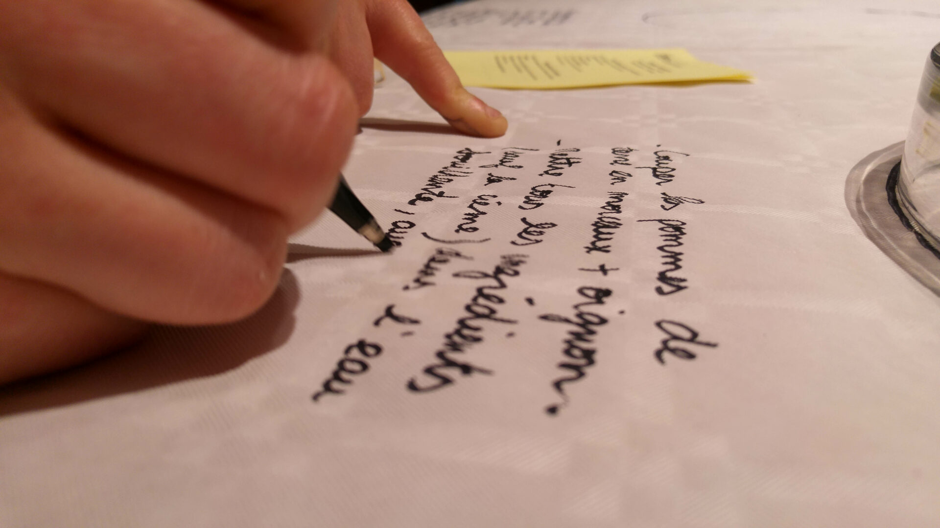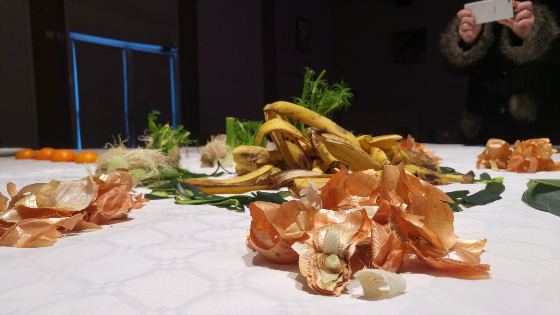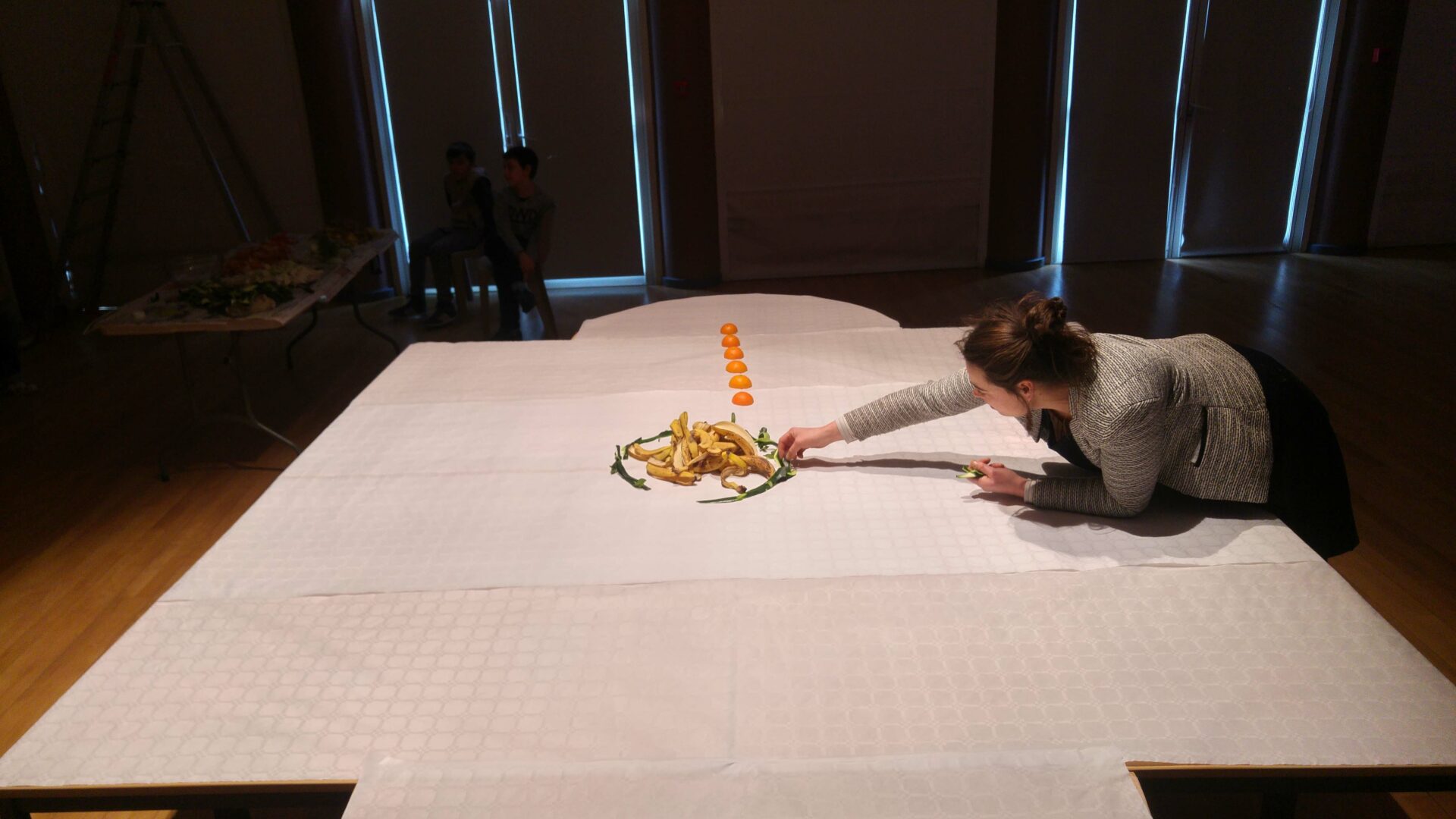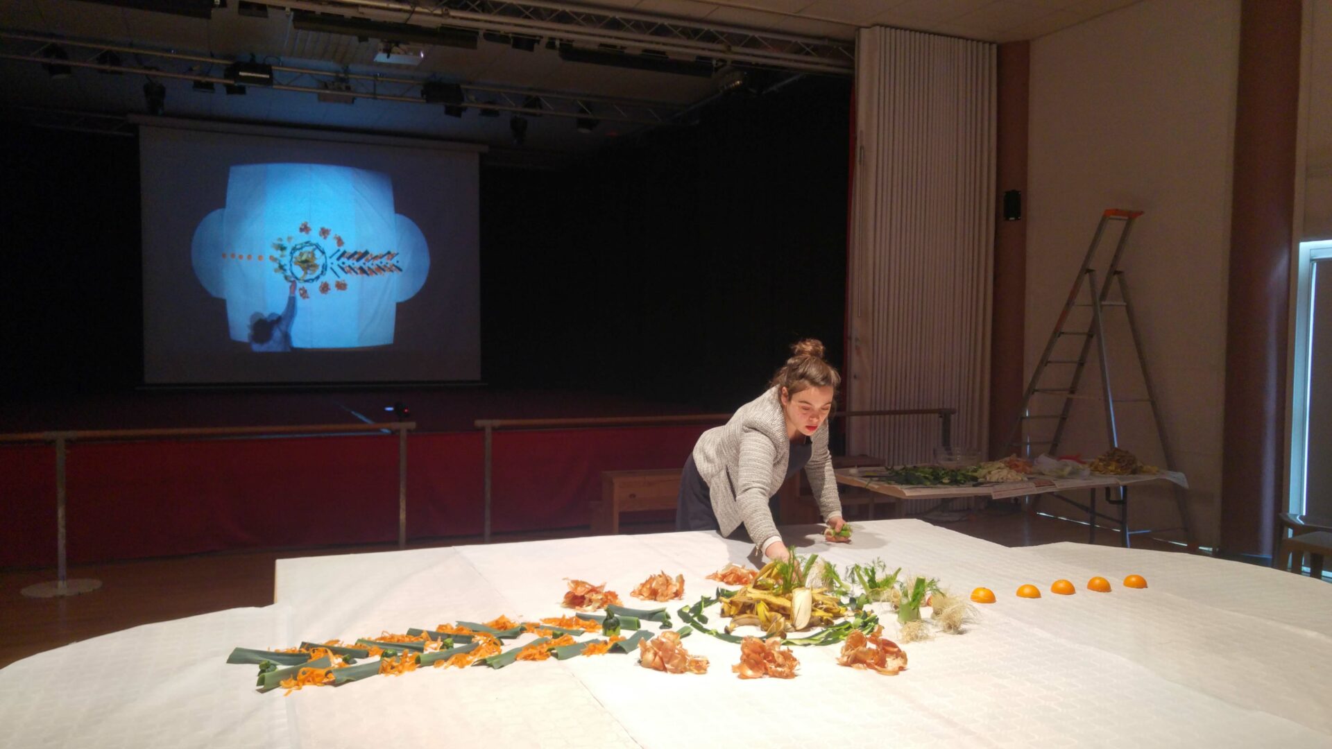 Pour cette édition 2017 les artistes de C.LE.A ont décidés de mettre en scène l’espace de l’événement et en offrir ainsi une nouvelle vision. Cette fois-ci la table est devenu support de compositions faites d’épluchures des différents fruits et légumes ayant servis à l’élaboration des soupes. Puis les recettes elles-mêmes ont trouvées leur place, inscrite à la main à coté des soupières, le tout filmé et re-projeté en direct sur un écran géant au fond de la salle. Les participants de l’événement pouvaient, tout en dégustant les soupes, prendre part à une composition graphique, se modifiant au gré du service des soupes colorées, des tâches sur la nappe, des mains et visages entraperçus au dessus de la table.