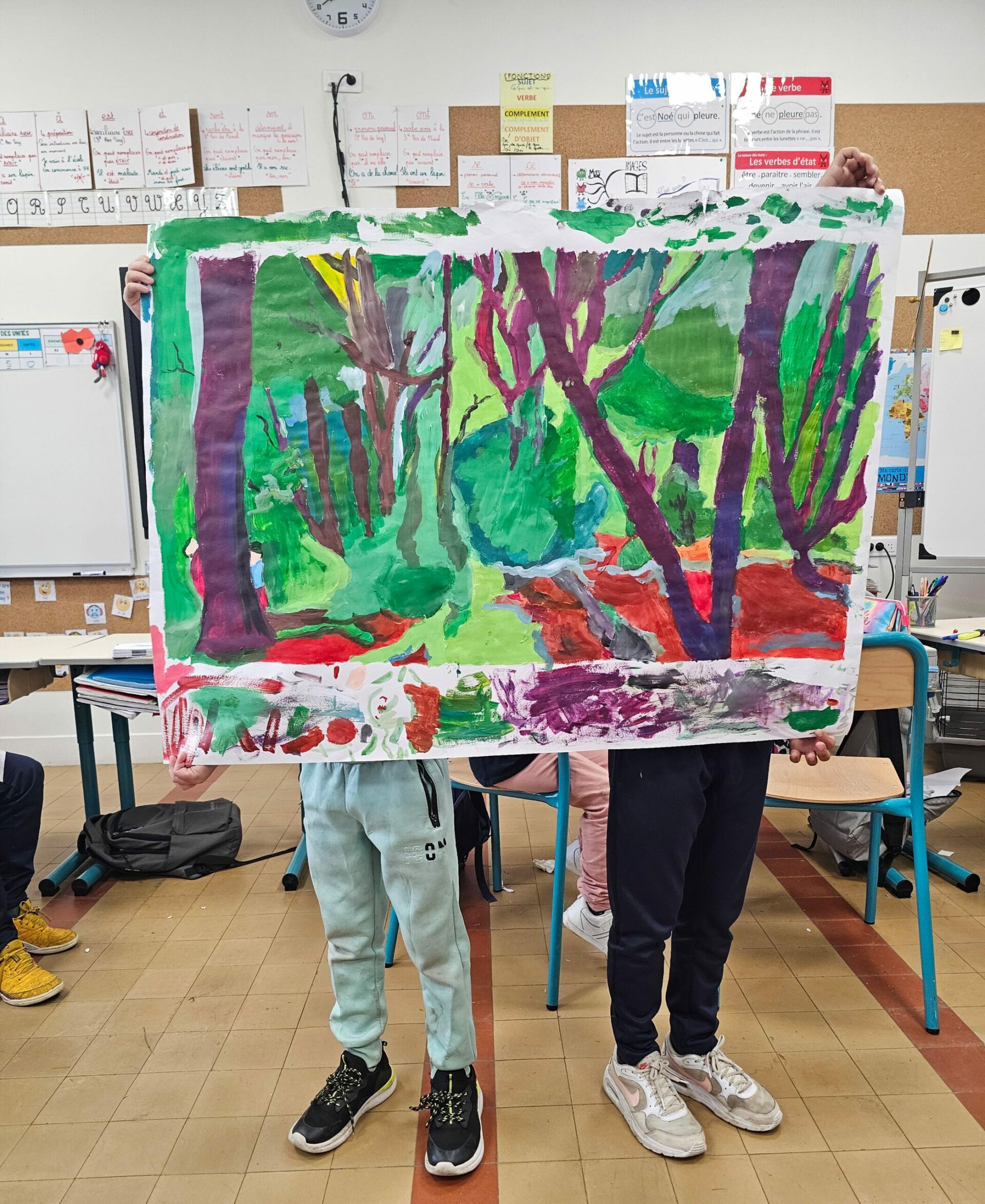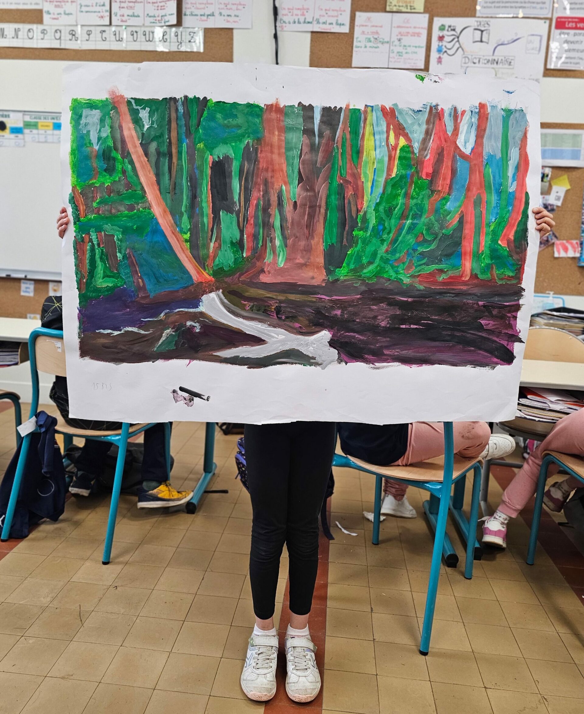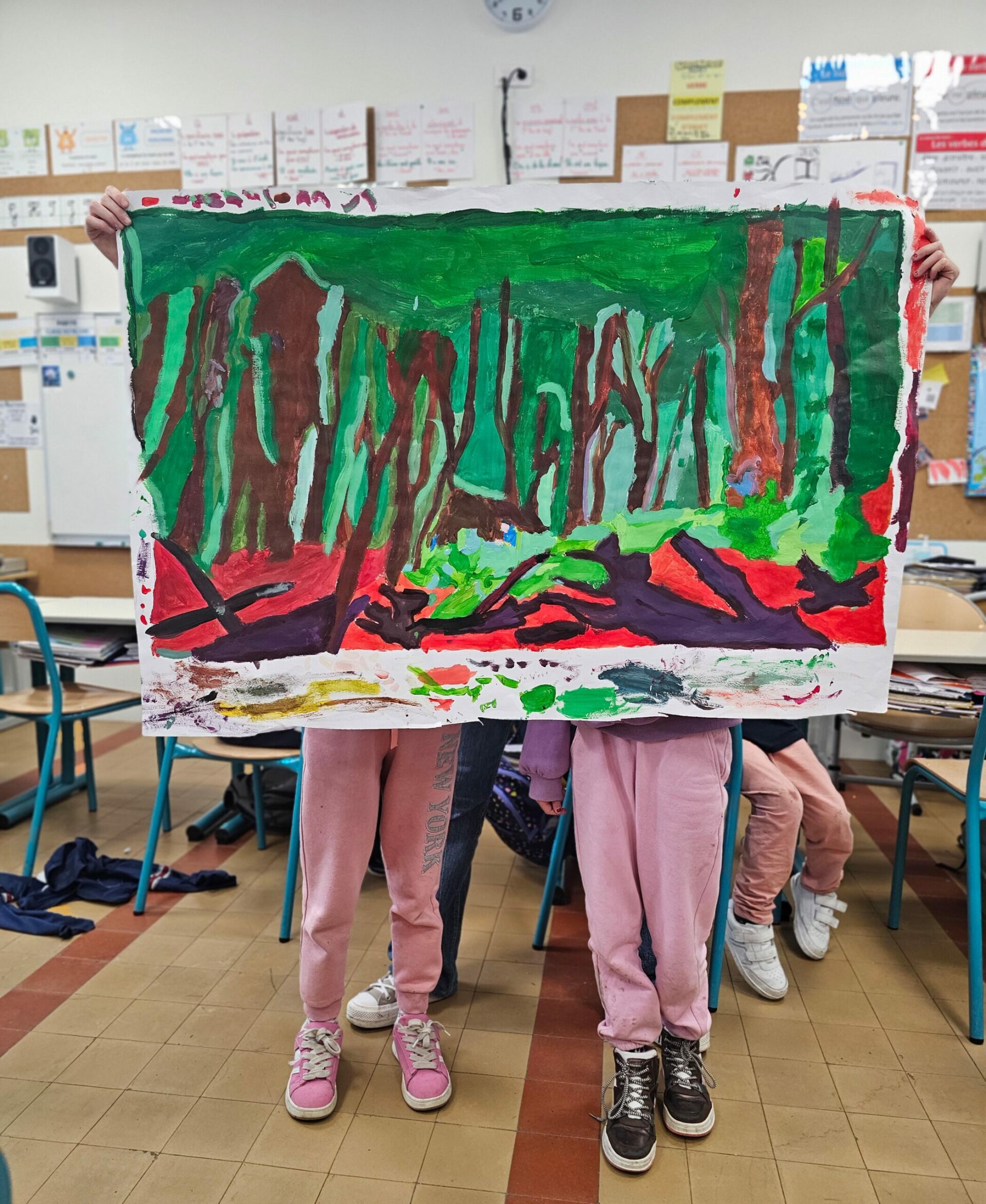 Ce projet est né d’un atelier mené en forêt avec une classe de CM1 de l’école de Boeschepe en 2025. L’intention était d’associer l’image en mouvement et la pratique picturale dans un même geste collectif.