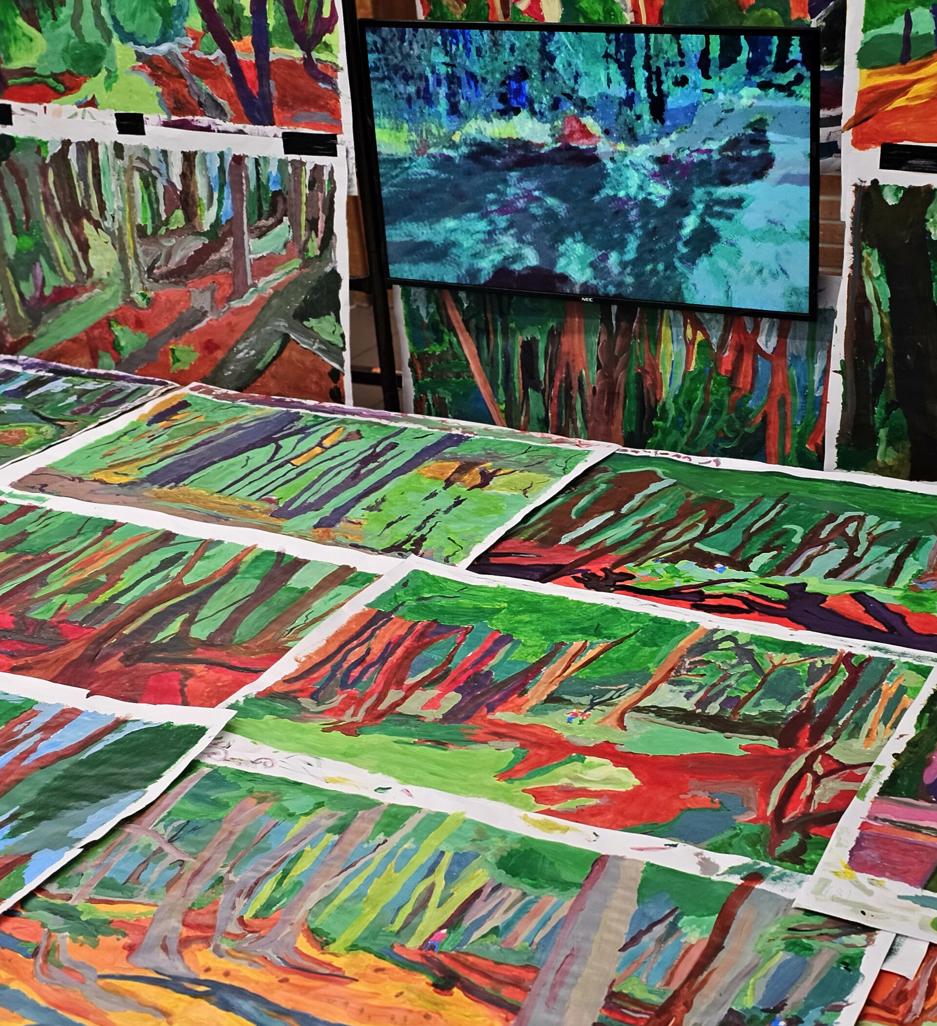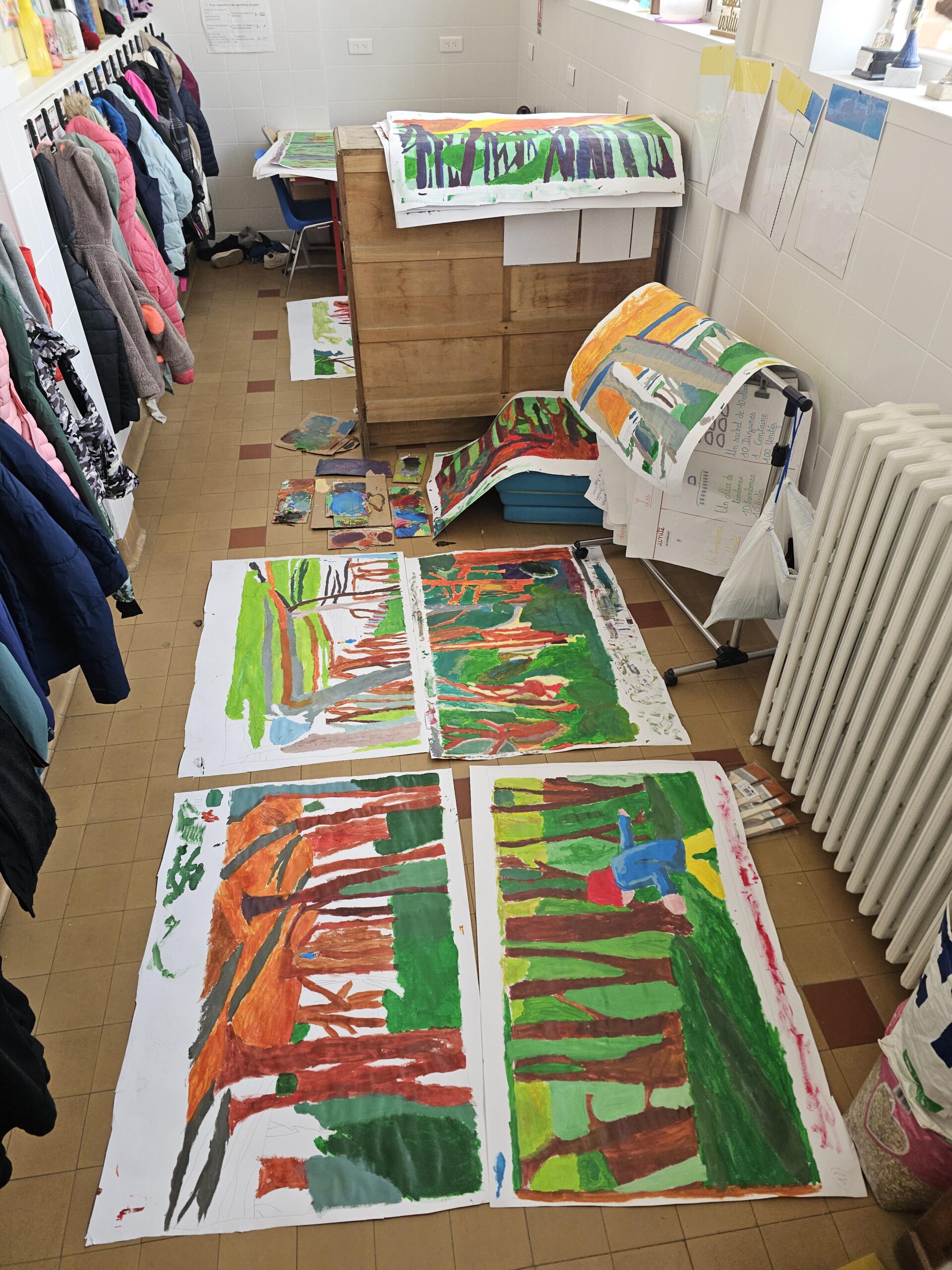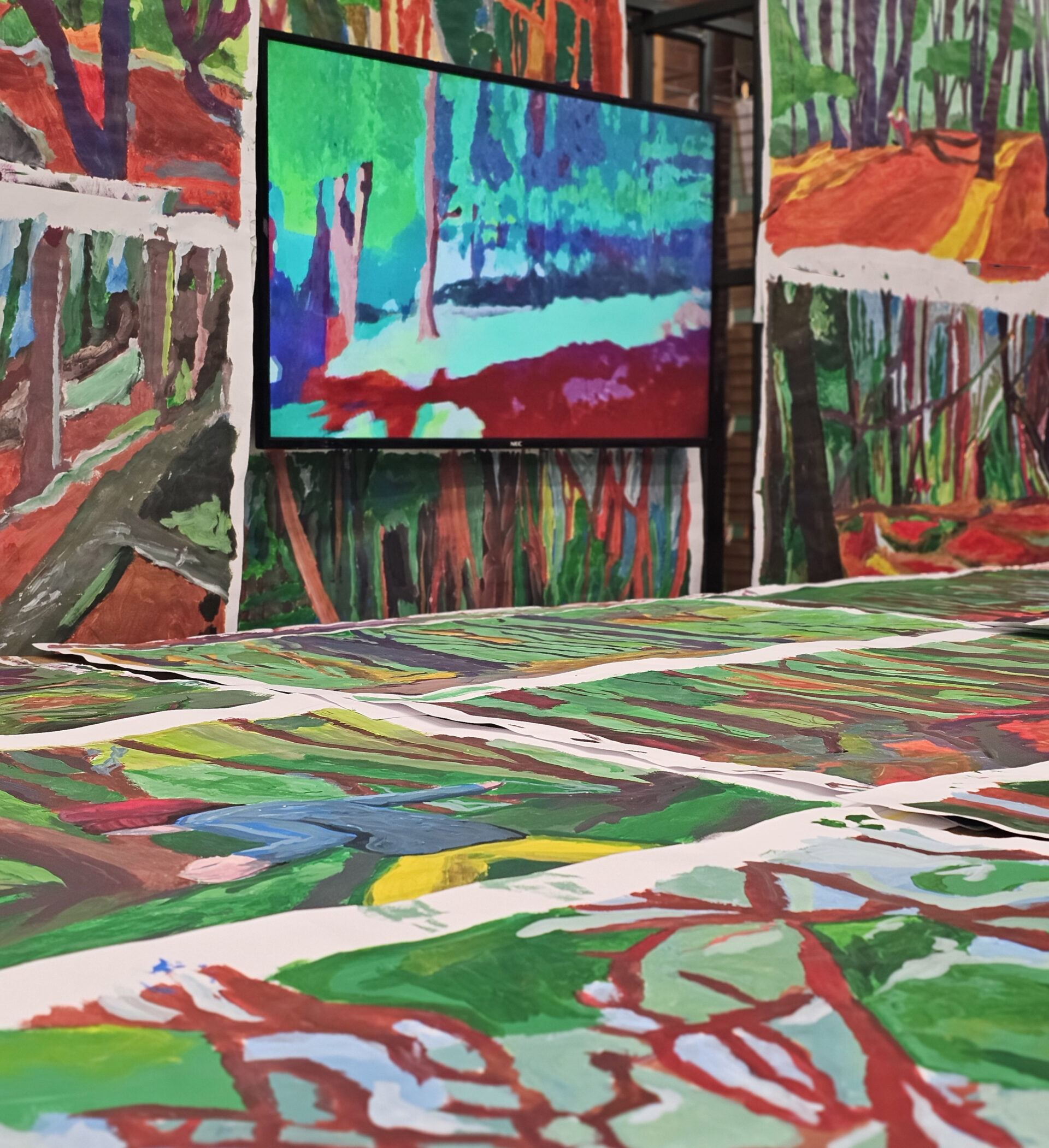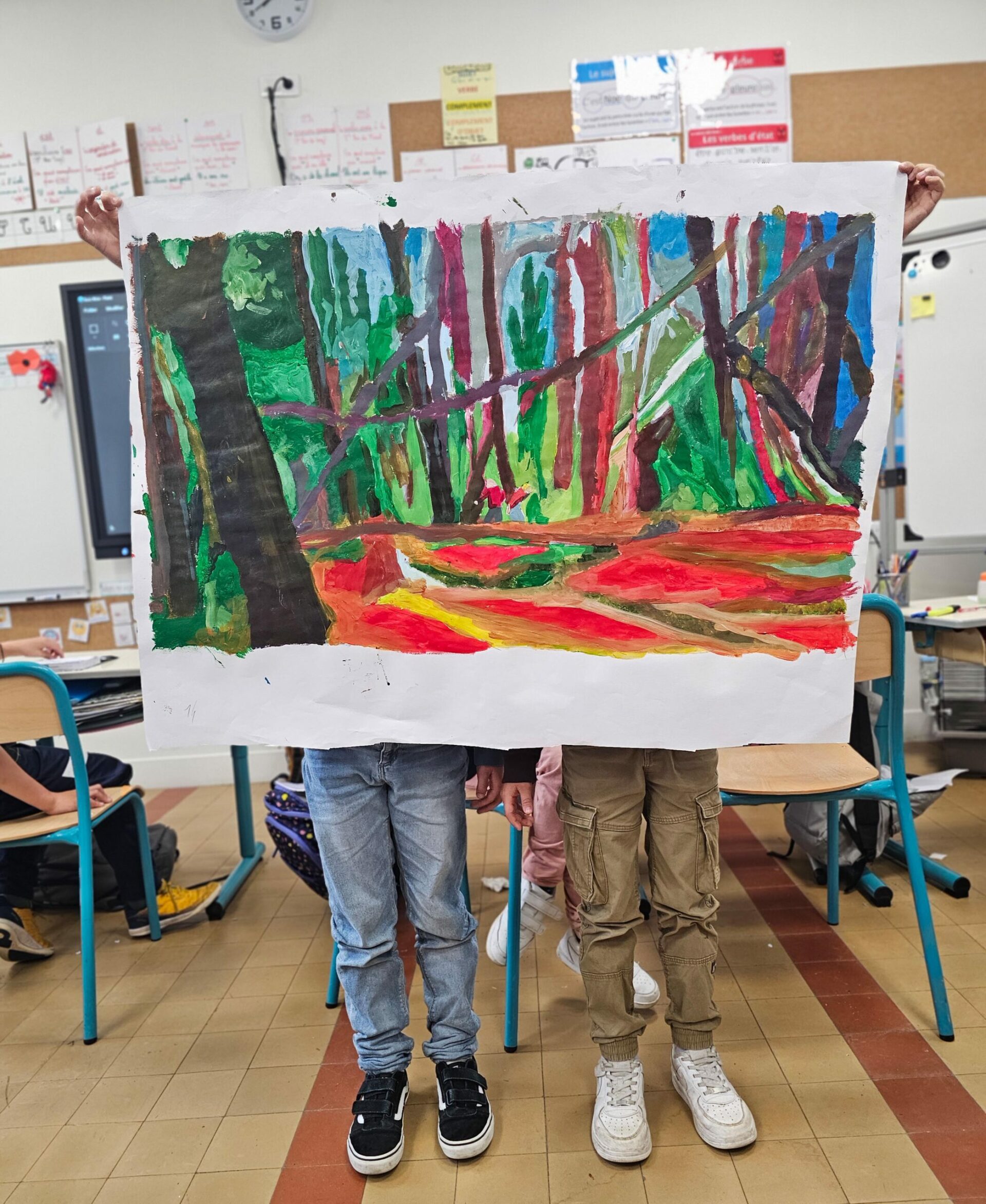 Ce projet est né d’un atelier mené en forêt avec une classe de CM1 de l’école de Boeschepe en 2025. L’intention était d’associer l’image en mouvement et la pratique picturale dans un même geste collectif.