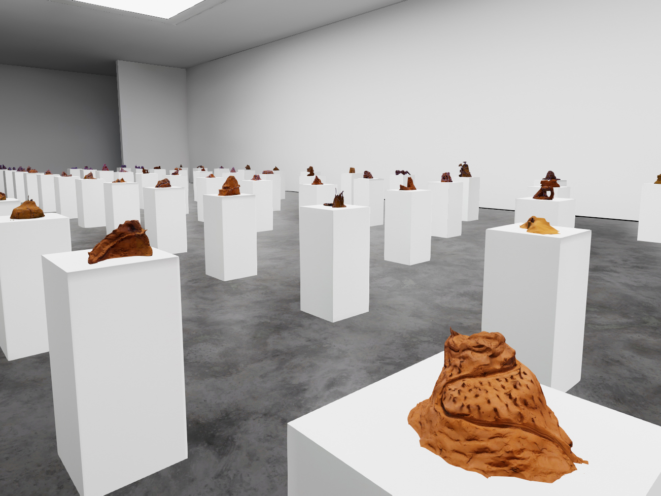 La salle principale de l’exposition virtuelle présente des réalisations produites par les élèves des collèges de Saint-André-les-Alpes, de Castellane et d’Annot, durant la résidence avec Guillaume Lepoix. Chacune de ces sculptures en terre glaise représente un « mont intime ». C’est-à-dire un petit paysage totalement imaginé et créé par les collégiens. La seule consigne que l’artiste leur a donné est la suivante : Faites votre propre montagne, mais réalisez ce micro paysage comme si vous pouviez le réellement le parcourir, le gravir et l’explorer.