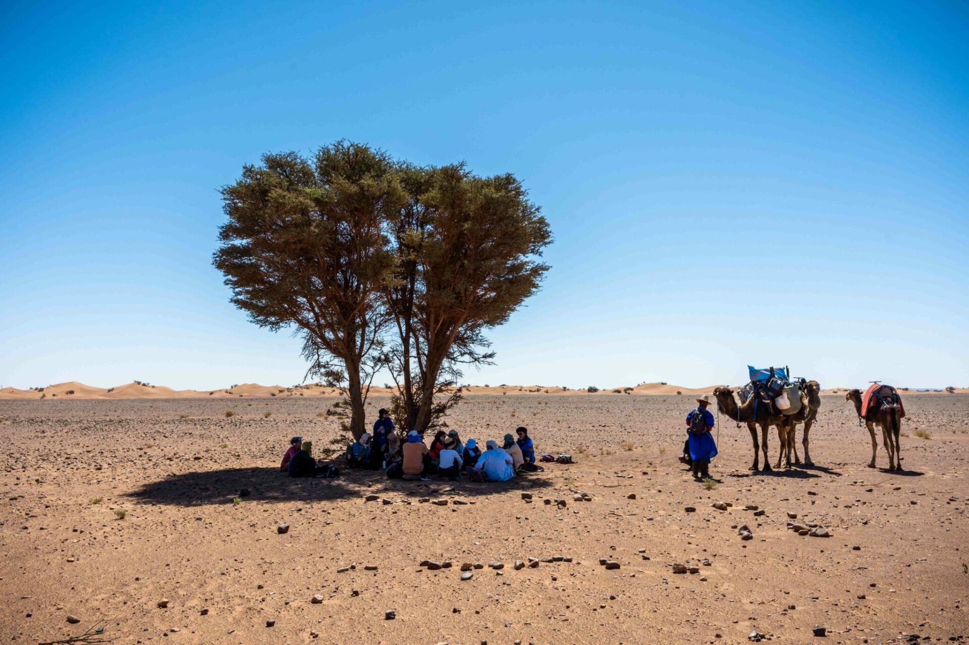 Au fil des jours, Kafila a offert une pause culturelle avec le BiblioTobiss, caravane 3.0, partageant des haltes à M’Hamid, Zagora et Agdz. Cette initiative a permis de partager nos échanges culturels avec un public plus large, notamment les plus jeunes, à travers une bibliothèque itinérante, un musée numérique et des ateliers.