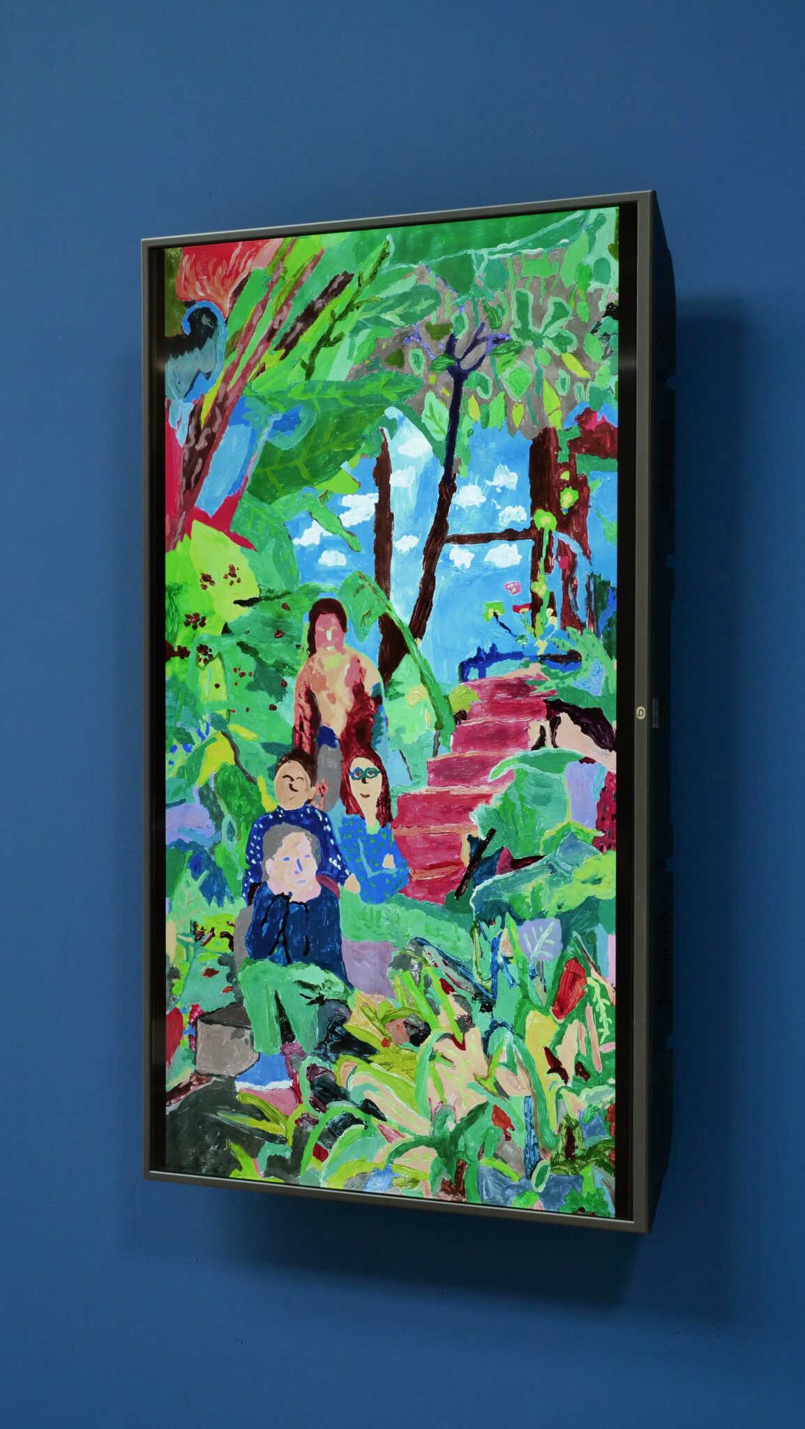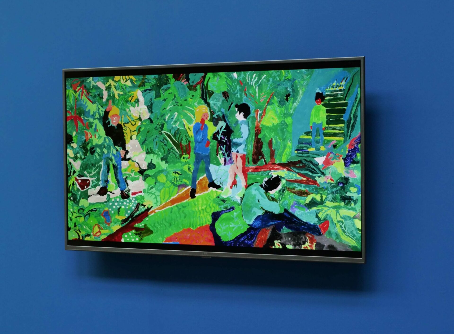 Dans l’observation de ce processus et des transmutations qui en découlent, les enfants ont pu constater que leur travail change de nature lorsqu’il glisse d’une technique à l’autre, acquérant les caractéristiques de la peinture (fixité, composition, aplats et touches de couleurs) tout en y imposant celle de la vidéo (écoulement du temps, mouvement dans l’espace, matière numérique, etc). Dans cet alliage pictural, chaque médium se met au service de l’autre.