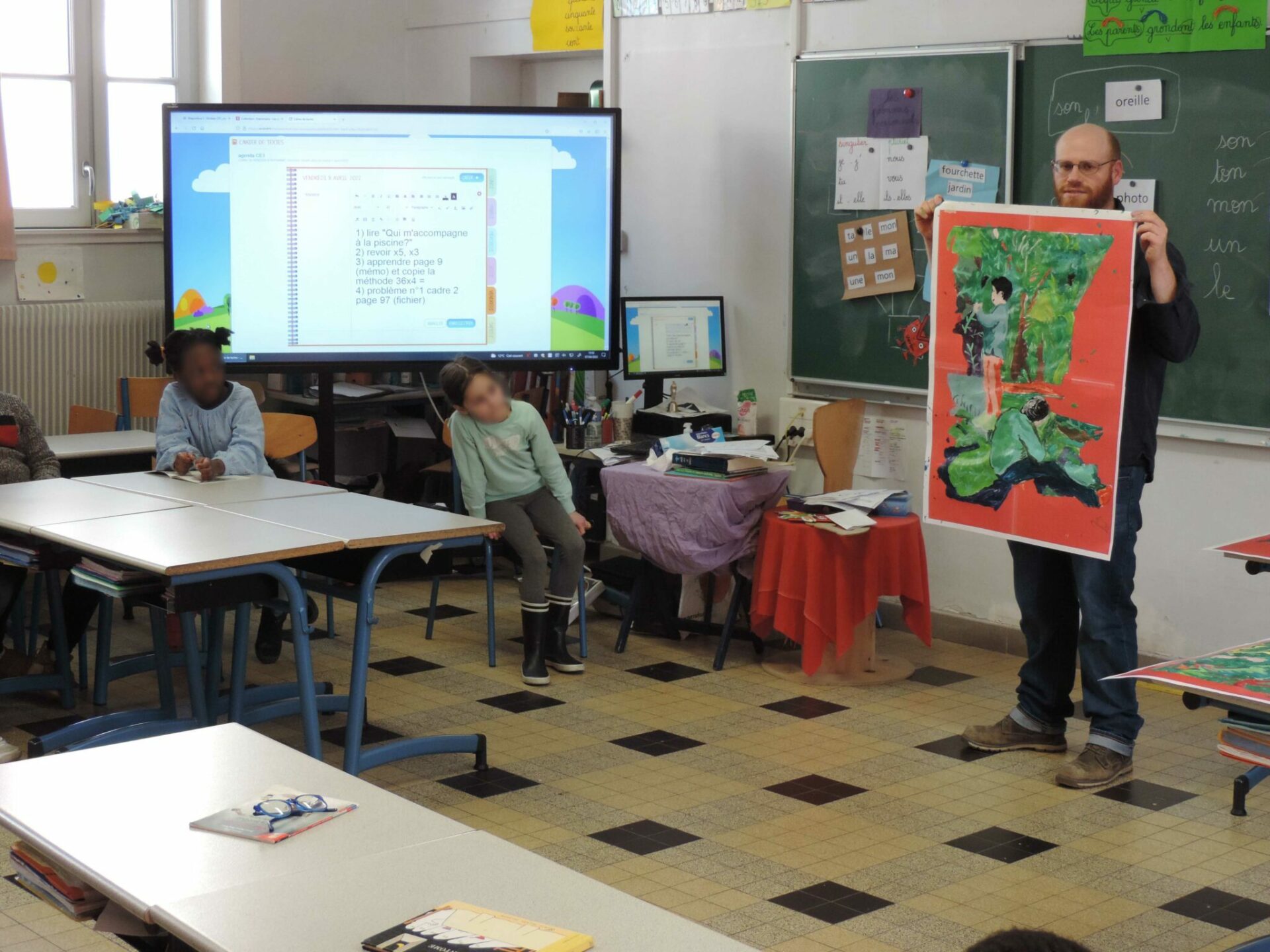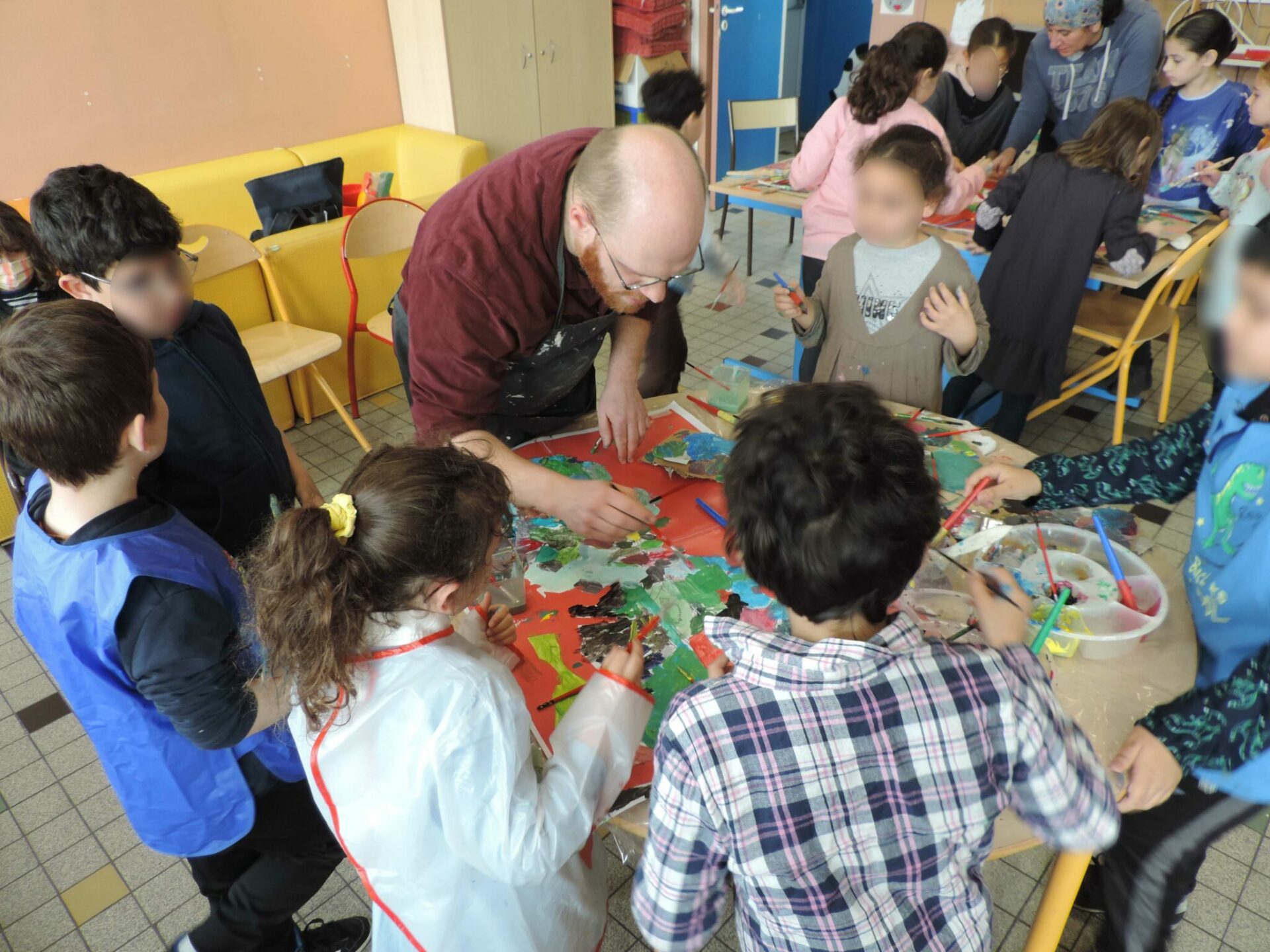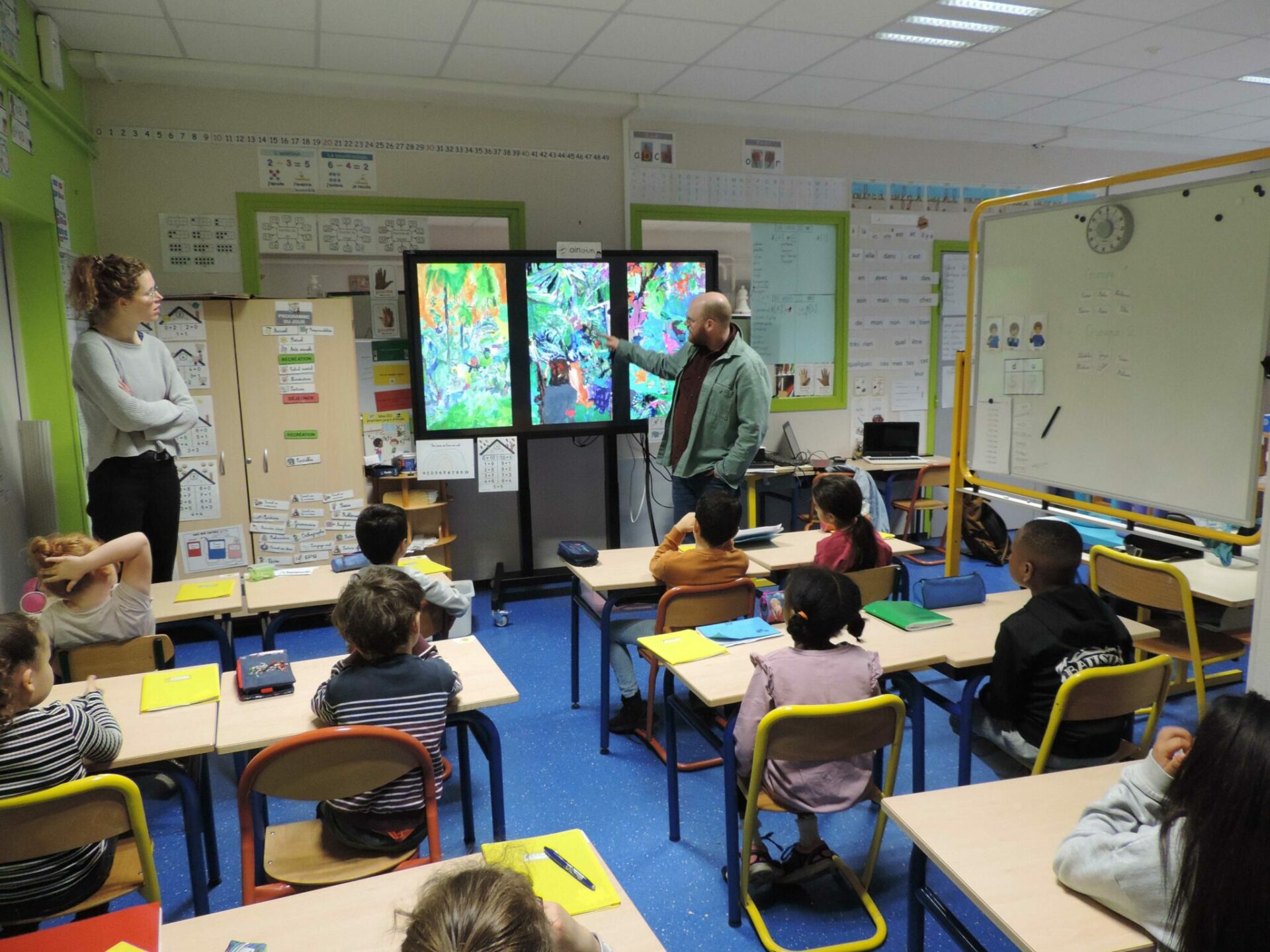L’idée était donc de trouver un moyen de donner corps à la peinture en l’inscrivant dans le temps, tout en gardant son ancrage dans la singularité et l’unicité de l’image picturale. Pour ce faire, je me suis associé avec des élèves du CP, CE1, CE2, CM1 et CM2 de différentes écoles lilloises dans le cadre d’une résidence A.R.T.S.