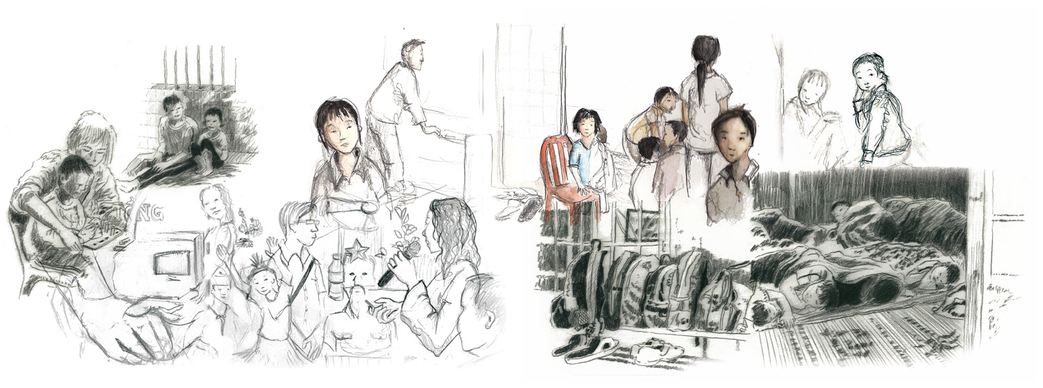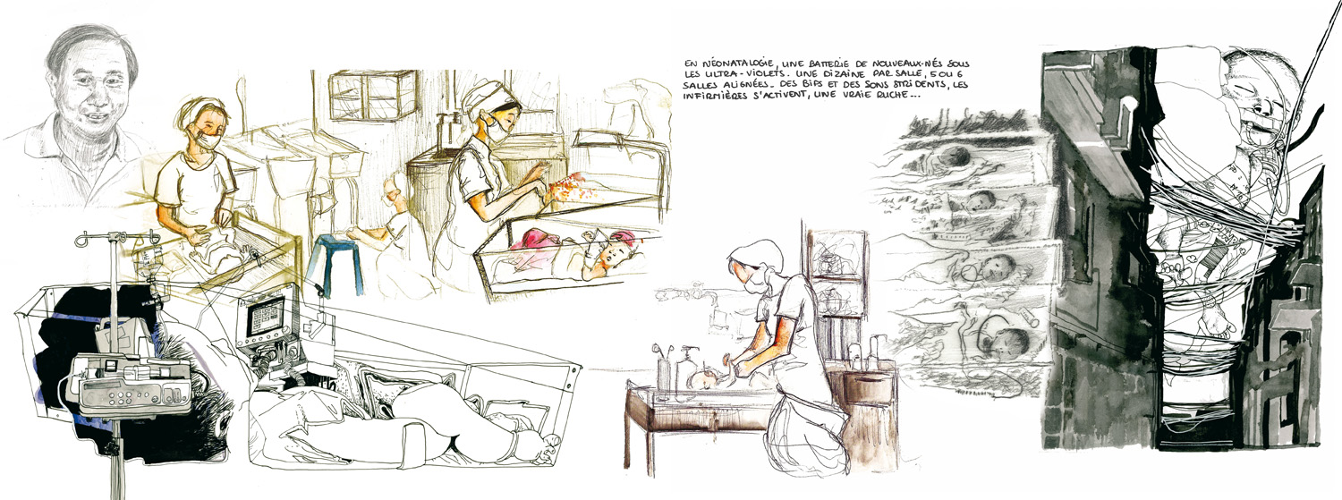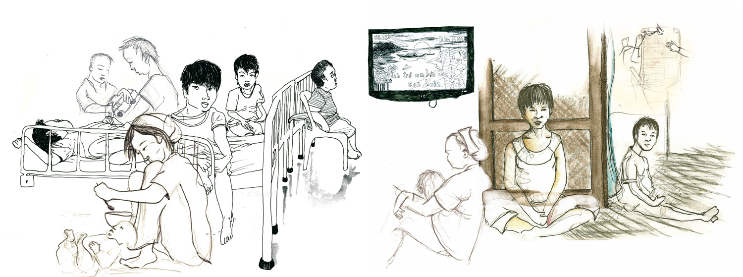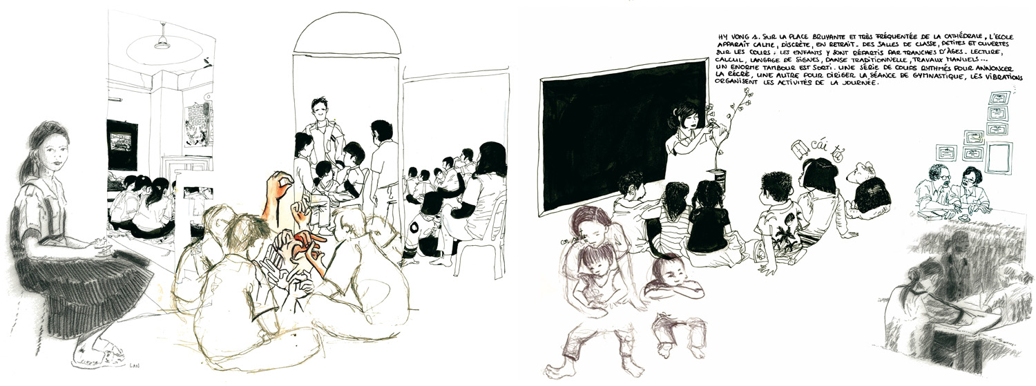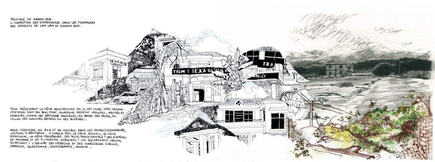 Au début de l’année 2011, deux étudiants de l’école supérieure d’art, accompagnés d’un enseignant, ont suivi une mission médicale de l’ONG L’APPEL( appel au développement pour les enfants du monde ), associée au CHBS-Lorient. Portant sur le programme «Naissances et handicap au Viet Nam», cette mission s’est déroulée à Ho Chi Minh ville et dans la province de Khanh Hoa. L’objectif pour les étudiants était d’enregistrer la mémoire de cet échange professionnel, médical et culturel en réalisant un travail de dessin. Ils présentent aujourd’hui l’ouvrage né de ce projet, dans le cadre du mois de mai du Viet Nam : un carnet de voyage, édité et vendu au profit de L’APPEL.